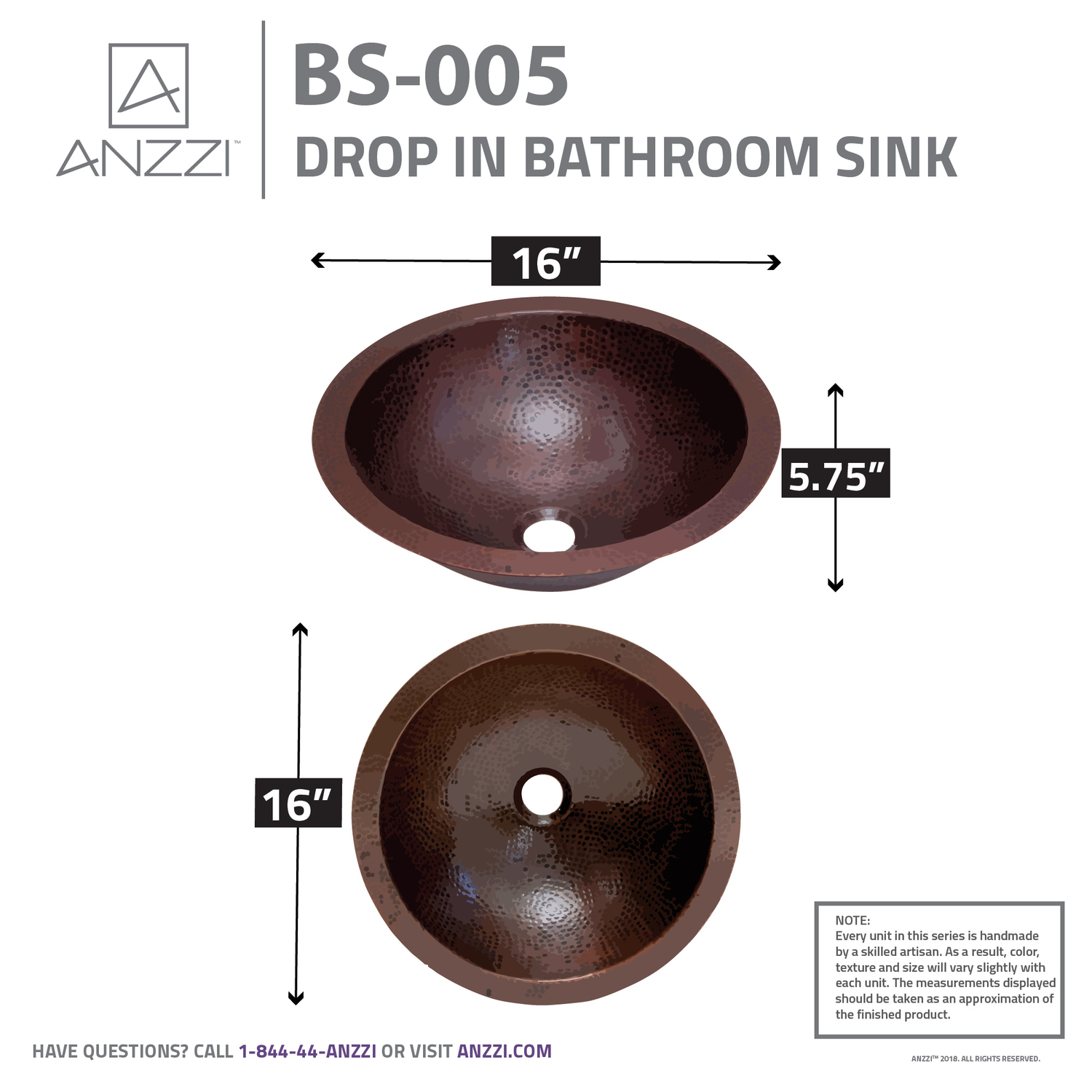 ANZZI presents the latest trending in modern antique Antakya series drop-in bathroom sink. All ANZZI Antakya bathroom sinks are handcrafted using only Rhino Alloy certified artisan copper. Whether waking up in the morning or coming home every evening, you’ll be greeted by the striking beauty of this drop-in bathroom sink. Become a member of the ANZZI family and experience why Perfection is our Tradition.Drop-in bathroom sinkShips within 24 hours of order processingEvery piece is fully handmade from start to finishCrafted using RHINO ALLOY certified copperLimited lifetime warranty from manufacturer defectsHandmade process will result in subtle variations in color, shape and finishPush drain includedOne piece constructionTo speak to a knowledgeable and dedicated ANZZI specialist simply call 1-844-44-ANZZI or visit us on the web at www.ANZZI.com