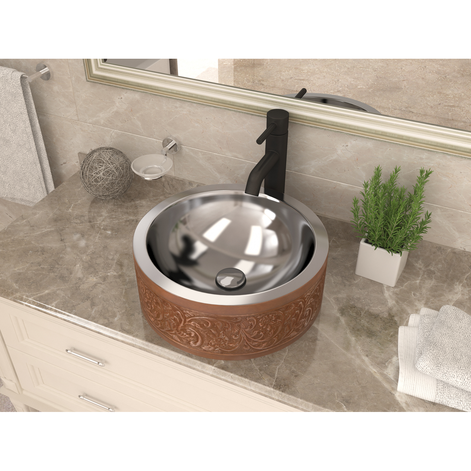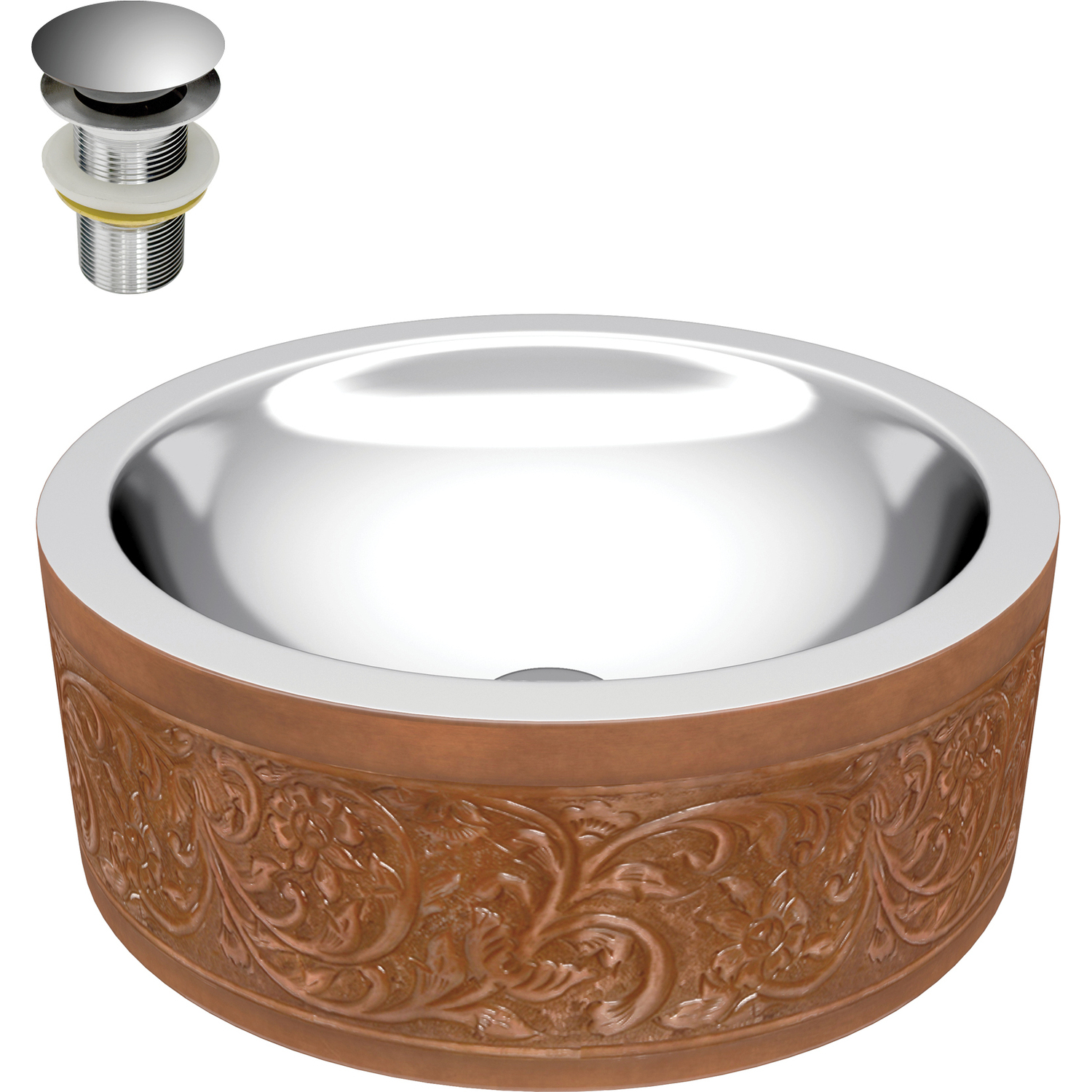 ANZZI presents the latest trending in modern antique Cadmean series vessel bathroom sink. All ANZZI Cadmean bath sinks are handcrafted using only Rhino Alloy certified artisan copper. Make this gorgeous bath vessel sink the center piece of your bathroom. Become a member of the ANZZI family and experience why Perfection is our Tradition.7" high bathroom vessel sink with polished smooth interiorShips within 24 hours of order processingEvery piece is fully handmade from start to finishCrafted using RHINO ALLOY certified copperLimited lifetime warranty from manufacturer defectsHandmade process will result in subtle variations in color, shape and finishPush drain includedOne piece constructionTo speak to a knowledgeable and dedicated ANZZI specialist simply call 1-844-44-ANZZI or visit us on the web at www.ANZZI.com