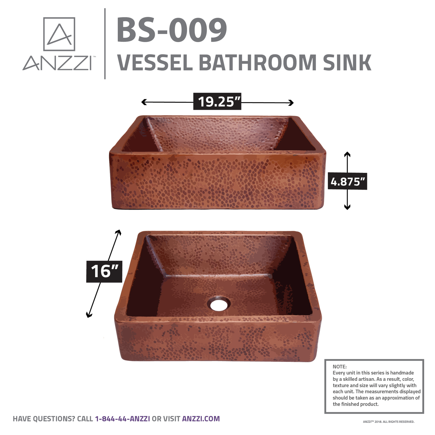 Anzzi Attica 19 in. Handmade Vessel Sink in Hammered Antique Copper, 191042047426, BS-009