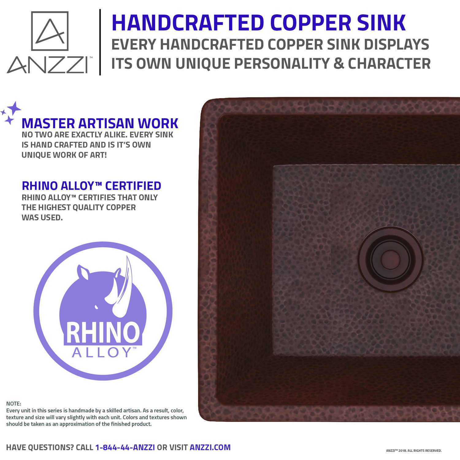 ANZZI presents the latest trending in modern antique Attica series vessel bathroom sink. All ANZZI Attica bath sinks are handcrafted using only Rhino Alloy certified artisan copper. Make this gorgeous bath vessel sink the center piece of your bathroom. Become a member of the ANZZI family and experience why Perfection is our Tradition.4.875" high bathroom vessel sink with hand hammered finishShips within 24 hours of order processingEvery piece is fully handmade from start to finishCrafted using RHINO ALLOY certified copperLimited lifetime warranty from manufacturer defectsHandmade process will result in subtle variations in color, shape and finishPush drain includedOne piece constructionTo speak to a knowledgeable and dedicated ANZZI specialist simply call 1-844-44-ANZZI or visit us on the web at www.ANZZI.com