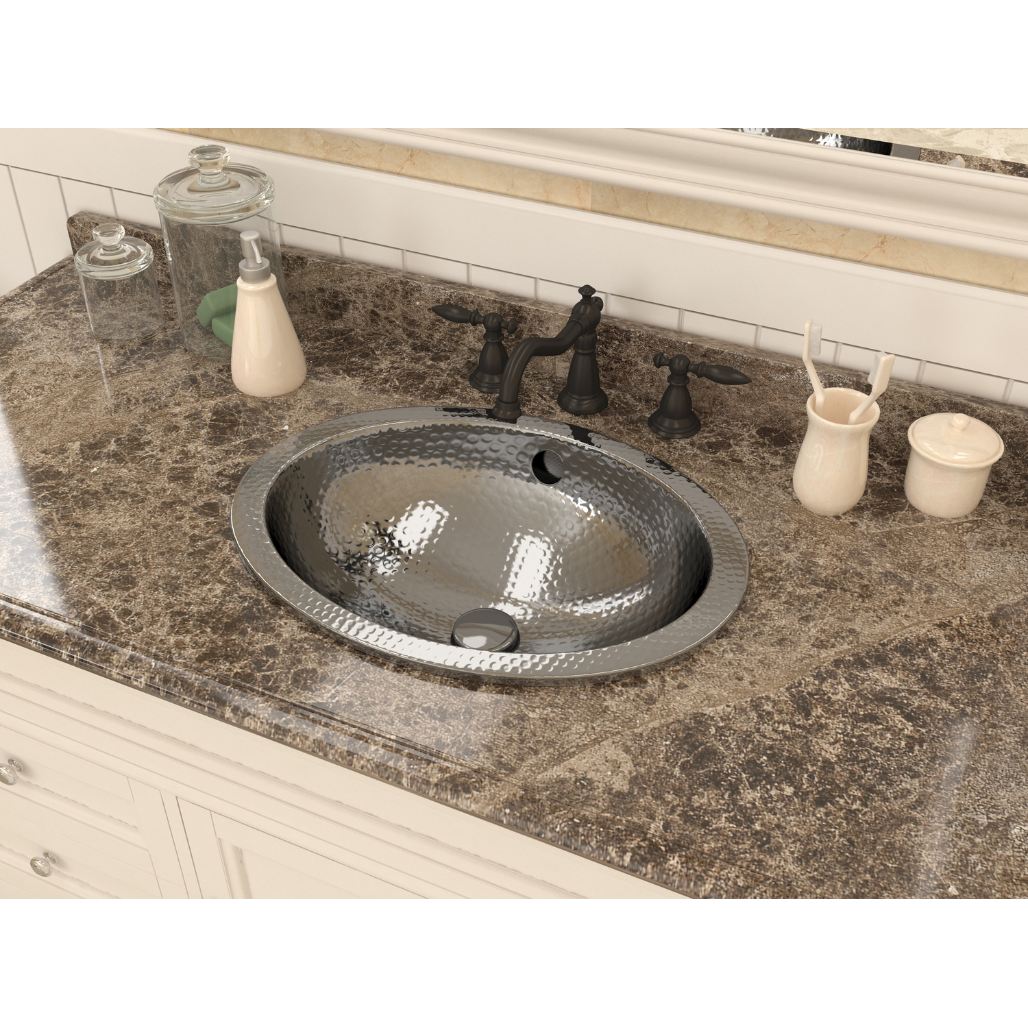 Anzzi Athenian 20 in. Handmade Drop-in Oval Bathroom Sink in Hammered Steel, 191042047488, BS-015