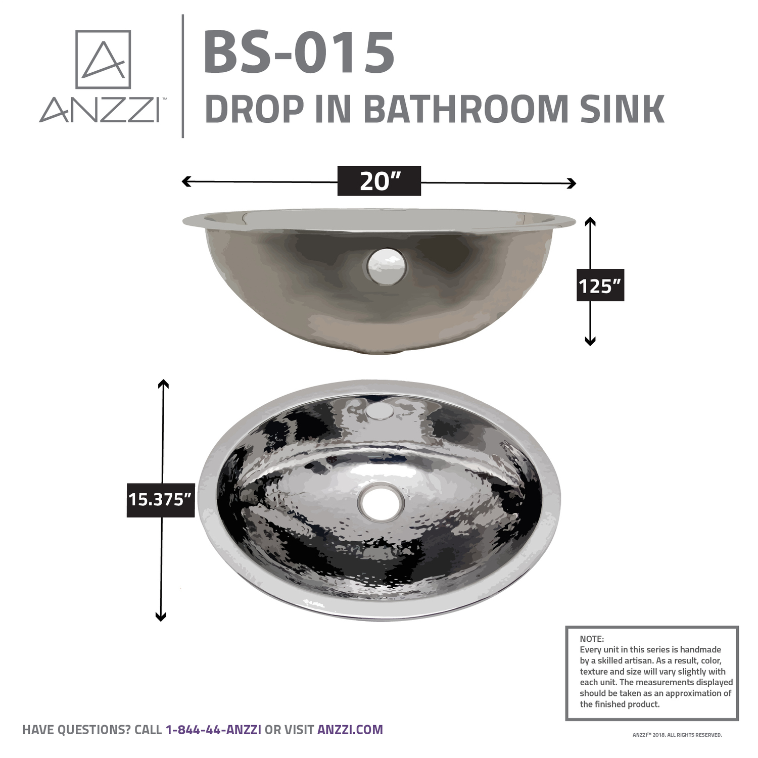 ANZZI presents the latest trending in modern antique Athenian series drop-in bathroom sink. All ANZZI Athenian bathroom sinks are handcrafted using only Rhino Alloy certified artisan stainless steel. Whether waking up in the morning or coming home every evening, you’ll be greeted by the striking beauty of this drop-in bathroom sink. Become a member of the ANZZI family and experience why Perfection is our Tradition.Drop-in bathroom sinkShips within 24 hours of order processingEvery piece is fully handmade from start to finishCrafted using RHINO ALLOY certified stainless steelLimited lifetime warranty from manufacturer defectsHandmade process will result in subtle variations in color, shape and finishPush drain includedOne piece constructionTo speak to a knowledgeable and dedicated ANZZI specialist simply call 1-844-44-ANZZI or visit us on the web at www.ANZZI.com