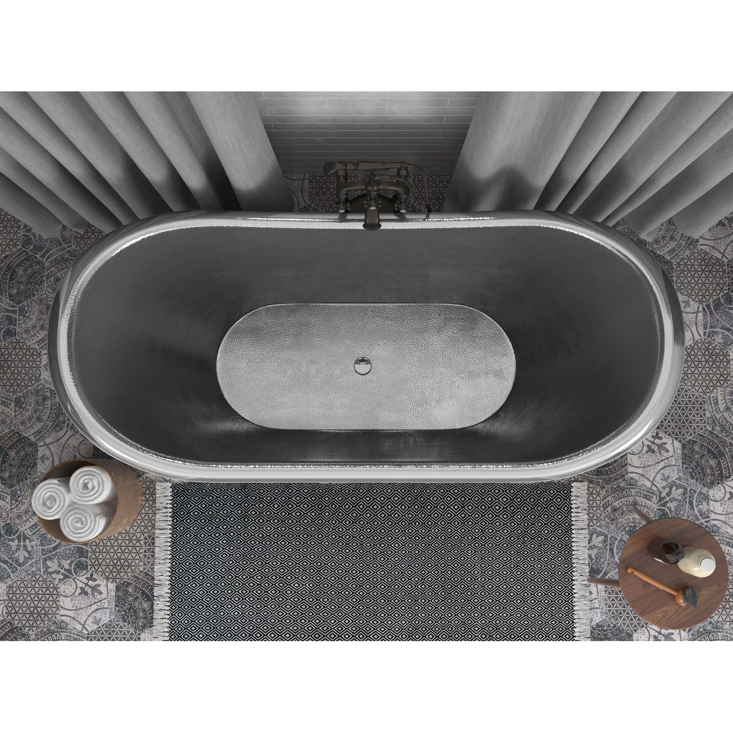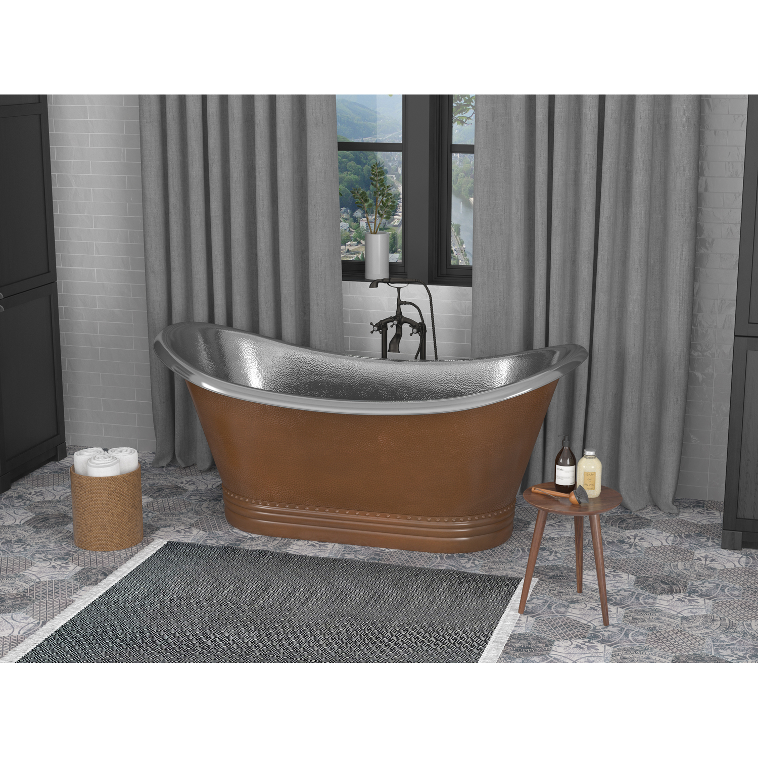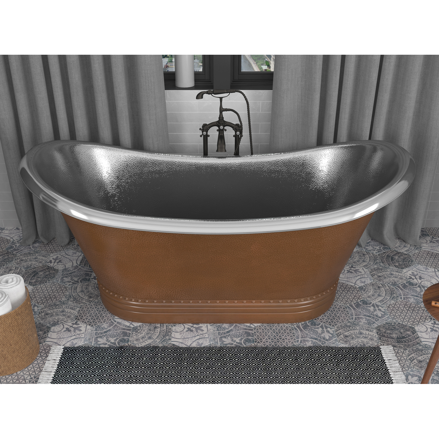 Anzzi Ionian 67 in. Handmade Copper Double Slipper Flatbottom Non-Whirlpool Bathtub in Hammered Antique Copper, 191042047020, BT-005