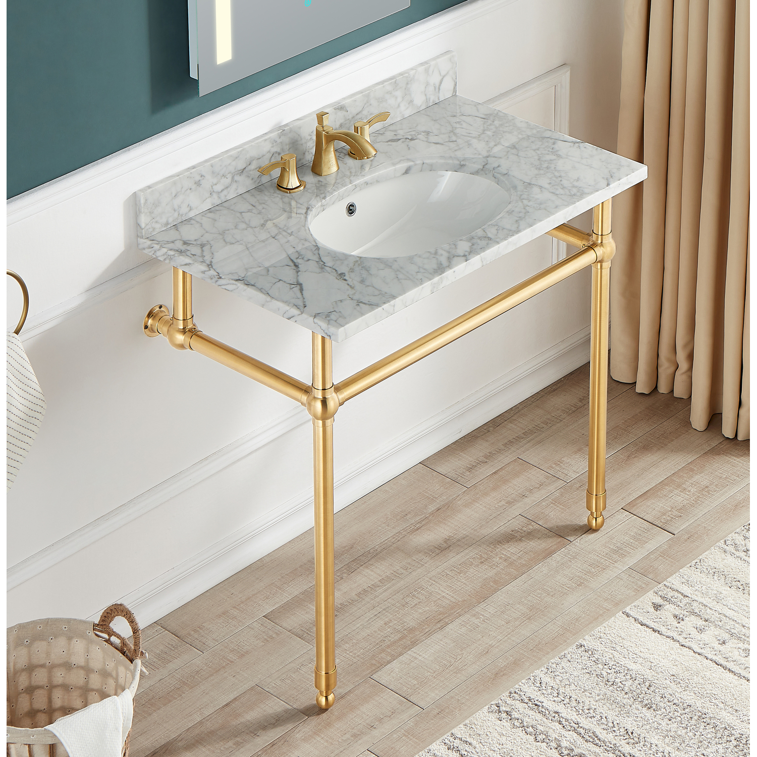 Step into a world of infinite possibilities with our Console Bases and Counter Tops with Basins. For your own fully customized DIY Bathroom Project, embrace the freedom to mix and match, allowing your creativity to flourish and your vision to come to life. Choose a base to match your existing top. With a variety of styles and finishes to choose from, finding the perfect match has never been easier. Why settle for an ordinary bathroom when you can have something extraordinary? Unleash your inner designer and embark on a journey to create a space that reflects your individuality. With our Console Bases and Counter Tops, the possibilities are limitless, and the outcome is pure bliss. Bring your dream bathroom to life today - effortlessly blend style, functionality, and customization with our Console Bases and Counter Tops with Basins. Get ready to fall in love with your bathroom all over again!Includes durable Carrara White Stone Counter Top with Sink - Base sold separately (Or Buy the Complete Set by Searching CS-FRKD01BG, CS-FRKD01BN, CS-FRKD01MB, or CS-FRKD01RG)Scratch-resistant Carrara White stone counter top features built-in backsplashCounter top dimensions: 36 in. W x 8 in. H x 22 in. DSink dimensions: 18.1 in. W x 12.9 in. DProtected by our Limited Lifetime WarrantyWater supply kit and drain not includedGet it fast — ships from warehouse within 24 hours of order processing