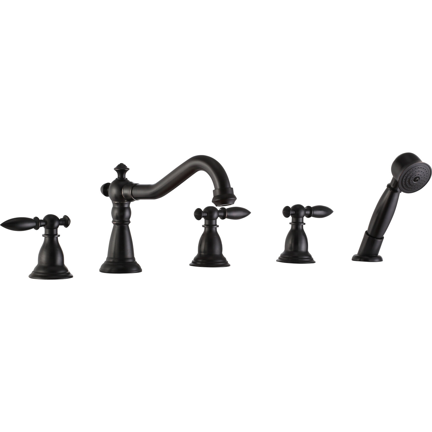 Anzzi Patriarch 2-Handle Deck-Mount Roman Tub Faucet with Handheld Sprayer in Oil Rubbed Bronze, 191042018488, FR-AZ091ORB