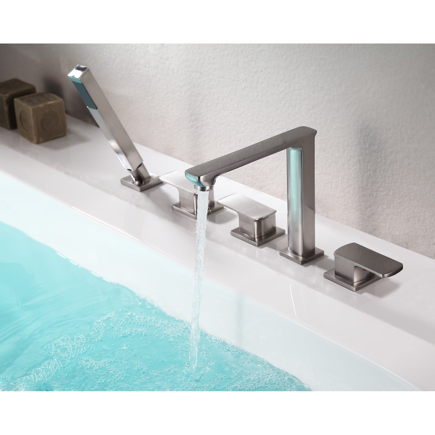 ANZZI is committed to introducing the latest in European bath fixture design to the North American home. ANZZI presents the Shore three handle bathtub faucet. Crafted using RHINO ALLOY certified brass interior, marine grade ceramic disk and brushed nickel lead-free rust resistant finish. The elegance and style of our ANZZI faucets is matched by their proven performance and reliability. Which is why our faucets are backed by the ANZZI Limited Lifetime Warranty. Become a member of the ANZZI family and experience why Perfection is our Tradition.Stunning brushed nickel finishRHINO ALLOY certified lead-free solid brass with rust resistant finishThree (3) handle operationFive (5) hole deck mounted installationMarine grade ceramic disk includedSpout reach: 6.69 in.; spout height: 6.3 in.Flow rate: 1.8 gpmConnection size: 3/8 in.cUPC and CEC certifiedLimited lifetime warrantyShips from factory within 24 hours of orderTo speak to a knowledgeable and dedicated ANZZI specialist simply call 1-844-44-ANZZI or visit us on the web at www.ANZZI.com