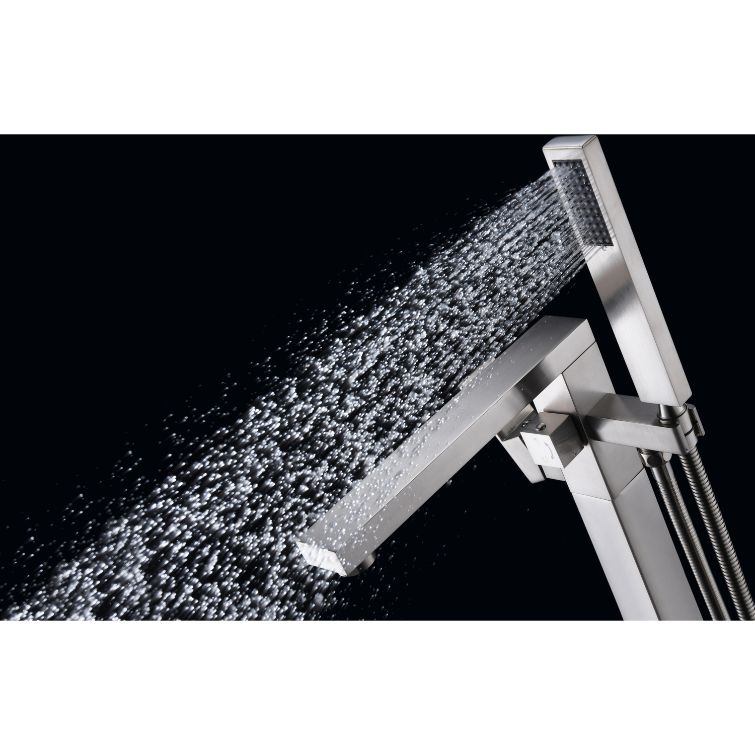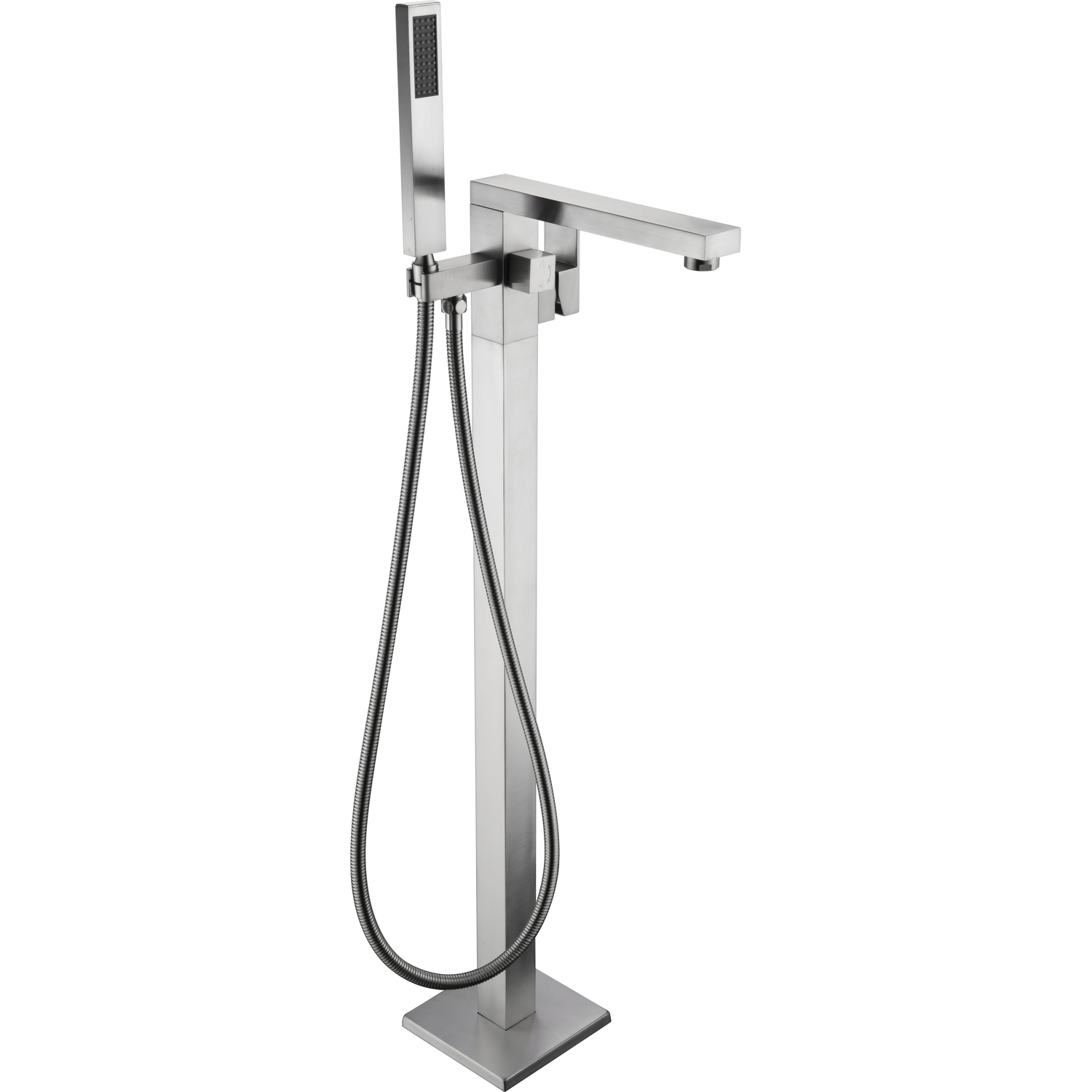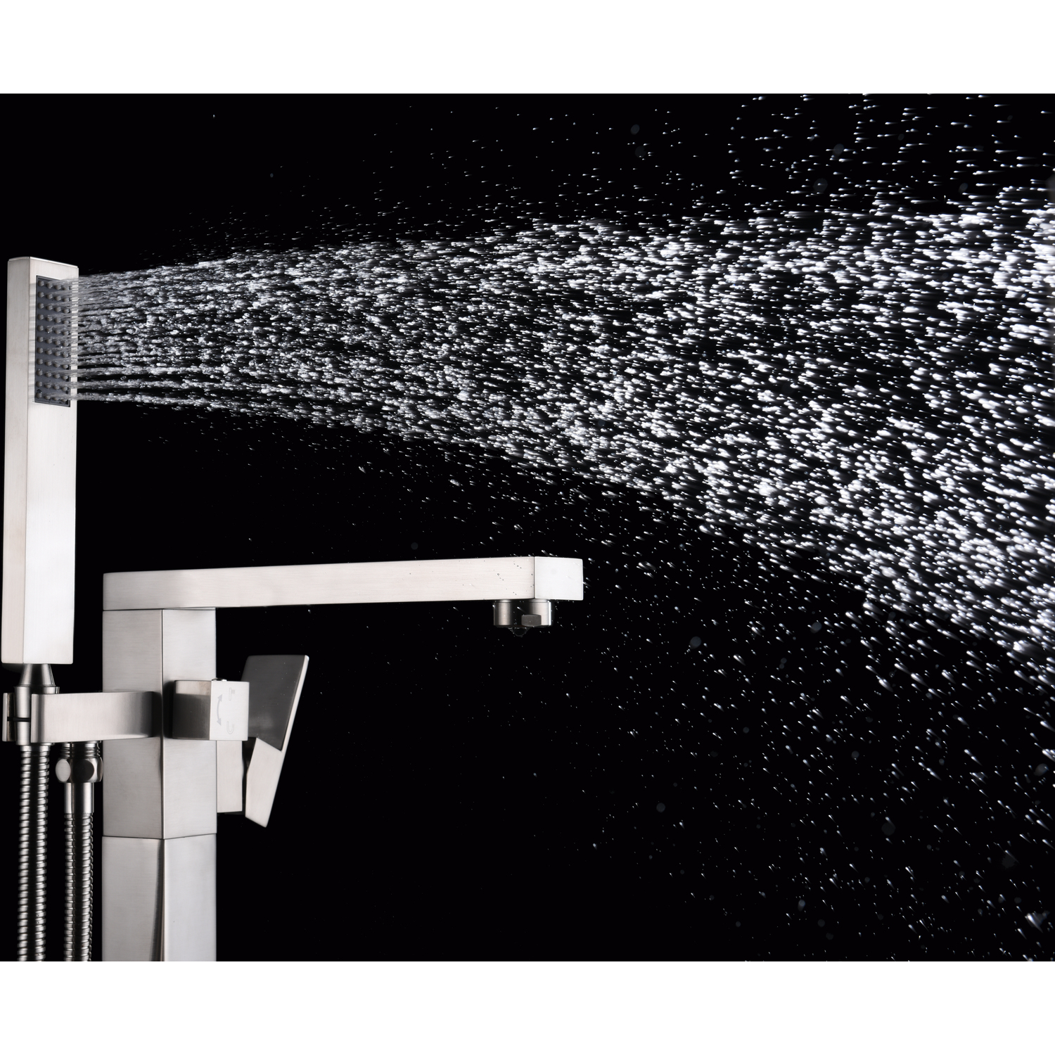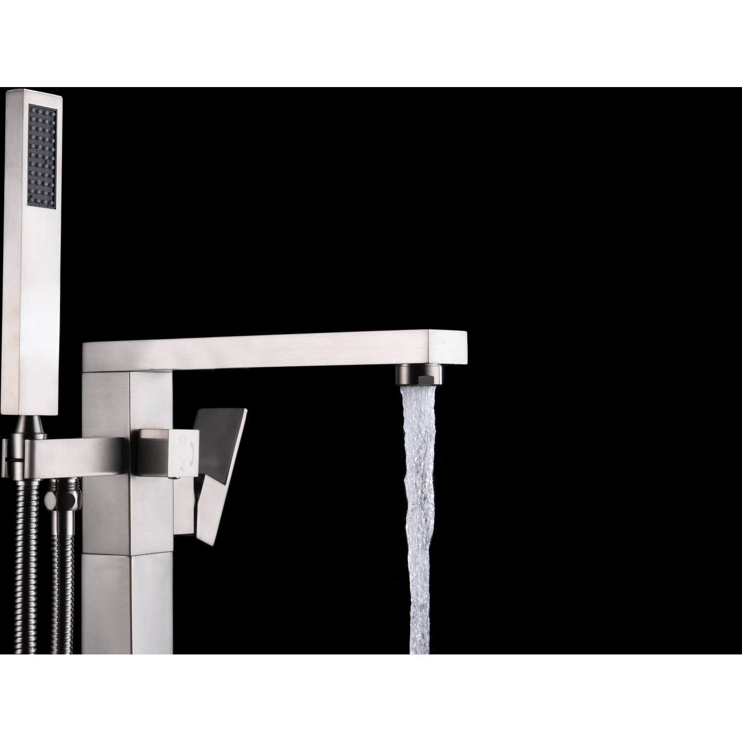 ANZZI has brought art to life in the form of an elegantly crafted full sized freestanding and claw foot tub floor mounted faucet. The ANZZI Khone series features 2 handle control design, powerful tub filling spout and far reaching hand held sprayer. All this is suspended atop a floor mounted freestanding architecture in brushed nickel which housing solid brass interior components. ANZZI freestanding faucets are crafted for looks and built for reliability.Two (2) handle freestanding claw foot tub faucet in a stunning brushed nickel finishcUPC certified for safety and reliabilityFree reign 60" reach handheld sprayerFloor mounted installationEverlasting Solid Brass ValvesHalf (.5)" supply line connectionOverall dimensions: 41 in. H x 6.7 in. L x 12.2 in. W8.9 in. spout reach1.8 gpm flow rateAll hardware and supply lines includedCrafted using RHINO ALLOY certified materials and componentsShips from factory within 24 hours of orderLifetime WarrantyTo speak to a knowledgeable and dedicated ANZZI specialist simply call 1-844-44-ANZZI or visit us on the web at www.ANZZI.com