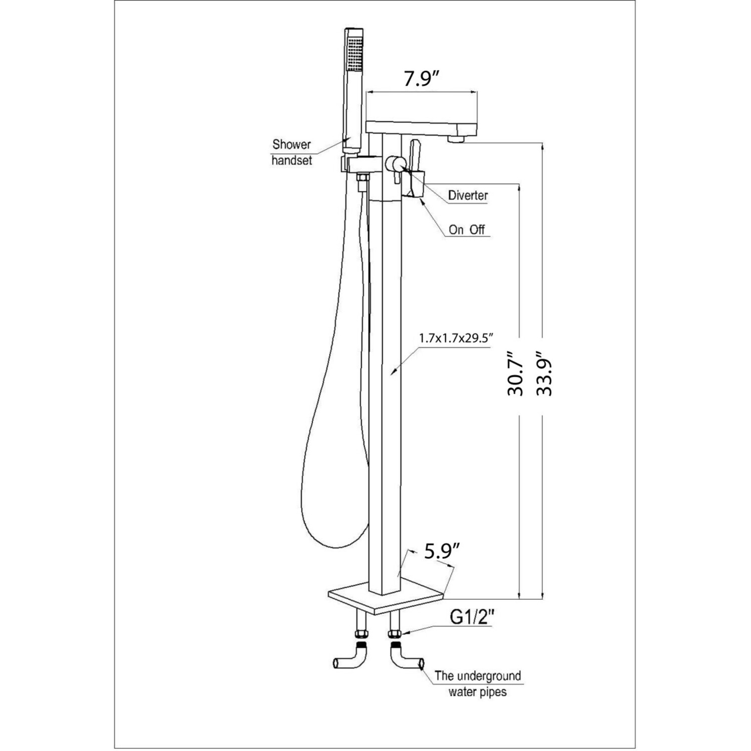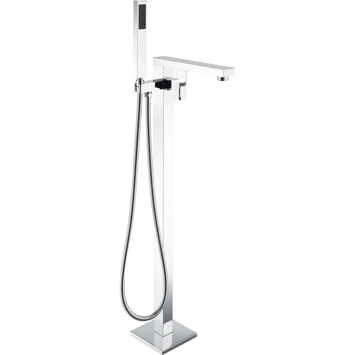 ANZZI has brought art to life in the form of an elegantly crafted full sized freestanding and claw foot tub floor mounted faucet. The ANZZI Khone series features 2 handle control design, powerful tub filling spout and far reaching hand held sprayer. All this is suspended atop a floor mounted freestanding architecture in polished chrome which housing solid brass interior components. ANZZI freestanding faucets are crafted for looks and built for reliability.Two (2) handle freestanding claw foot tub faucet in a lustrous polished chrome finishcUPC certified for safety and reliabilityFree reign 60" reach handheld sprayerFloor mounted installationEverlasting Solid Brass ValvesHalf (.5)" supply line connectionOverall dimensions: 41 in. H x 6.7 in. L x 12.2 in. W8.9 in. spout reach1.8 gpm flow rateAll hardware and supply lines includedCrafted using RHINO ALLOY certified materials and componentsShips from factory within 24 hours of orderLifetime WarrantyTo speak to a knowledgeable and dedicated ANZZI specialist simply call 1-844-44-ANZZI or visit us on the web at www.ANZZI.com