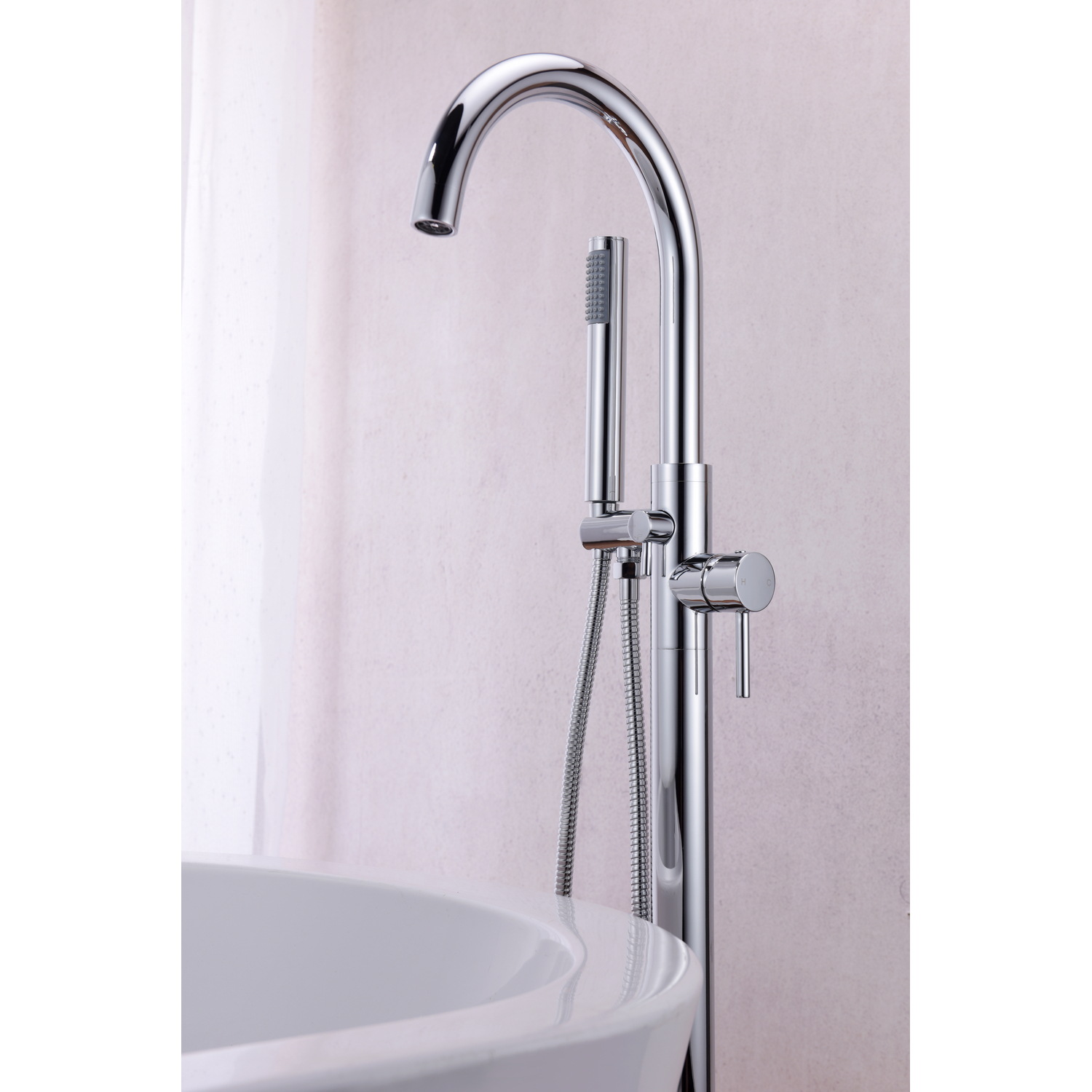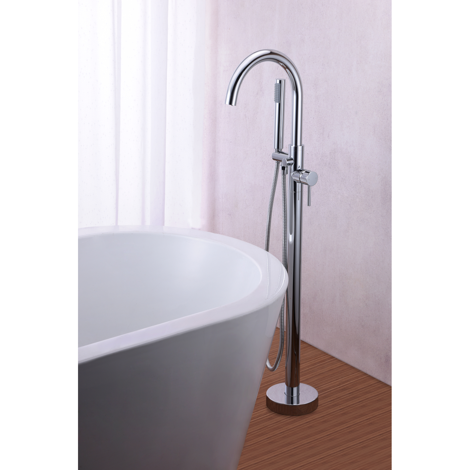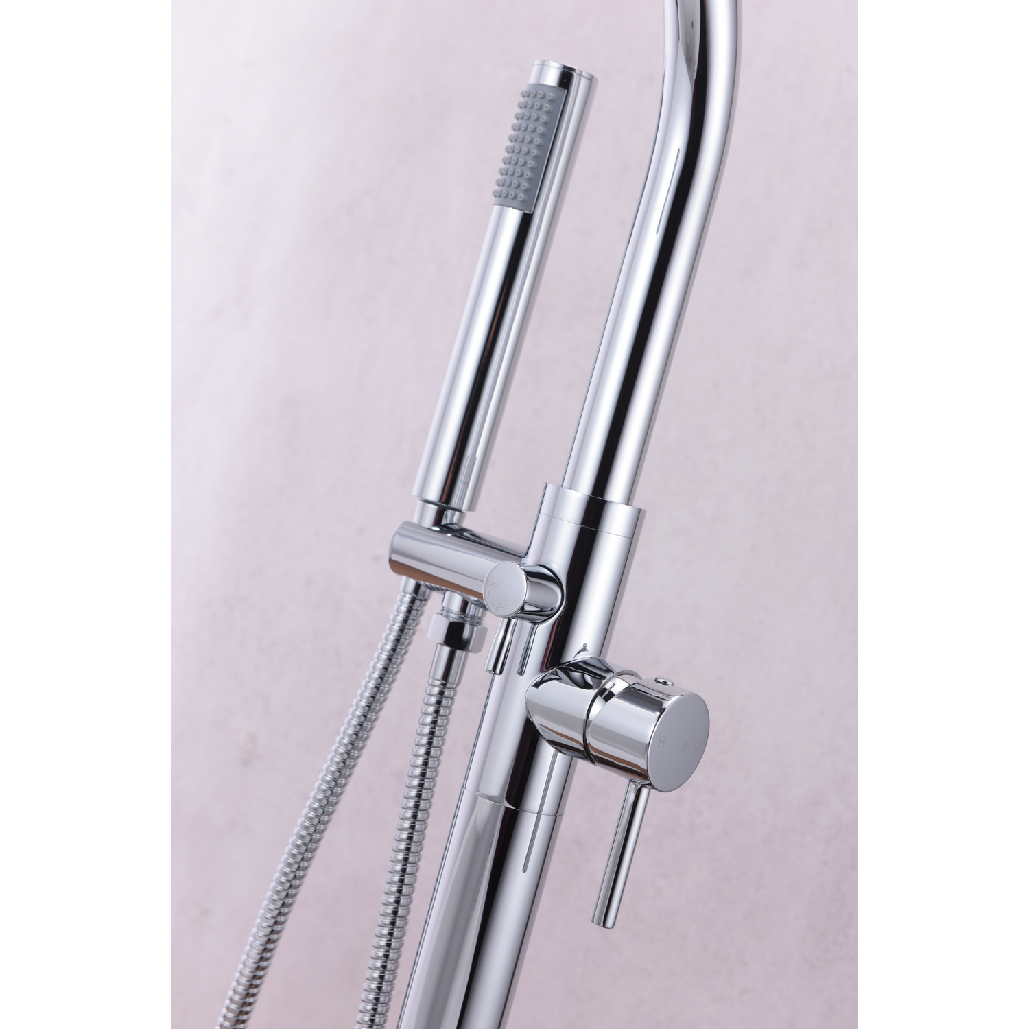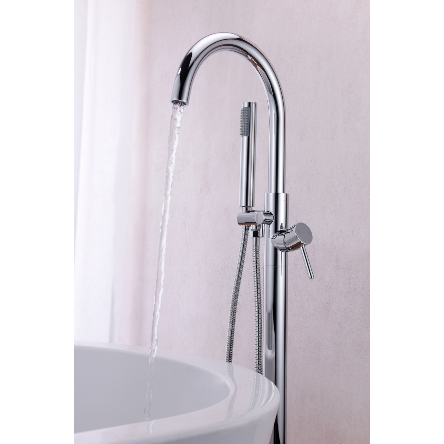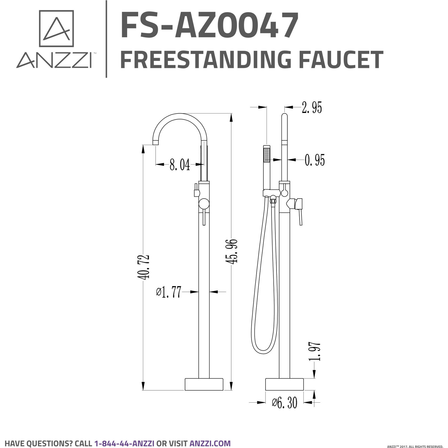 The ANZZI Coral Series 2-handle freestanding claw foot tub faucet with hand shower will add a classic appeal to any freestanding bathtub. Elegantly featuring a swan-like high arched spout, a single handle water lever (controls water temperature and flow), a diverter, and pull out hand sprayer. This floor mounted tub faucet is crafted for durability and is RHINO ALLOY certified.One (1) Piece Freestanding Claw Foot Tub Faucet with Hand shower in Polished Chrome FinishTwo (2) Handle Lever DesignOne (1) Handheld SprayerFloor Mounted, Single Hole InstallationEverlasting Solid Brass Valves.5 in Supply ConnectionOverall Dimensions 46 in (H) x 8 in (L) x 6.3 in (W)36 in Spout Height with a 9 in reachHand Sprayer Hose Length – 60 inAssembled Weight 13 lbs.Lever handles are ADA compliant for ease of operationCrafted using RHINO ALLOY Certified SteelLifetime WarrantyTo speak to a knowledgeable and dedicated ANZZI specialist simply call 1-844-44-ANZZI or visit us on the web at www.ANZZI.com