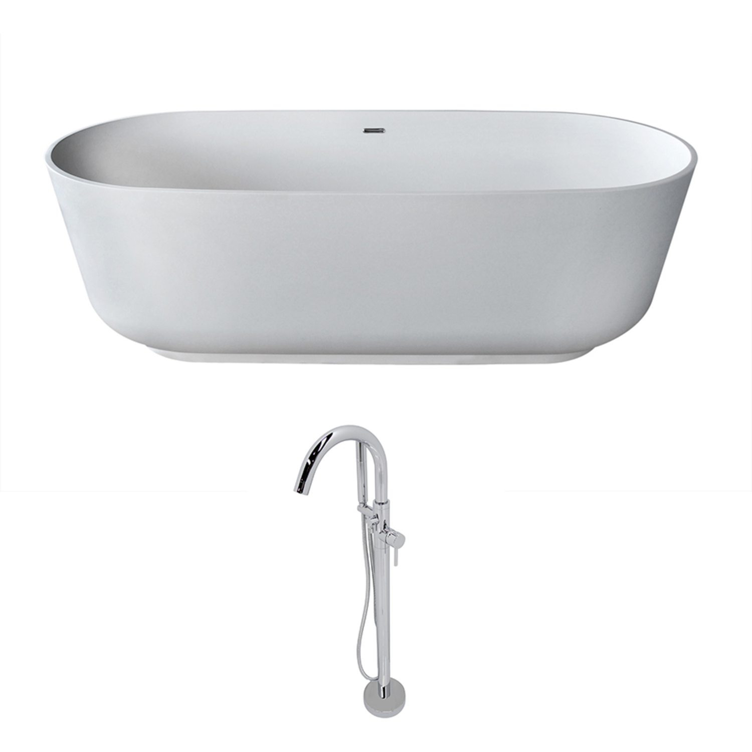 Anzzi Sabbia 5.9 ft. Solid Surface Classic Soaking Bathtub in Matte White and Kros Faucet in Chrome, 848308087039, FT511-0025