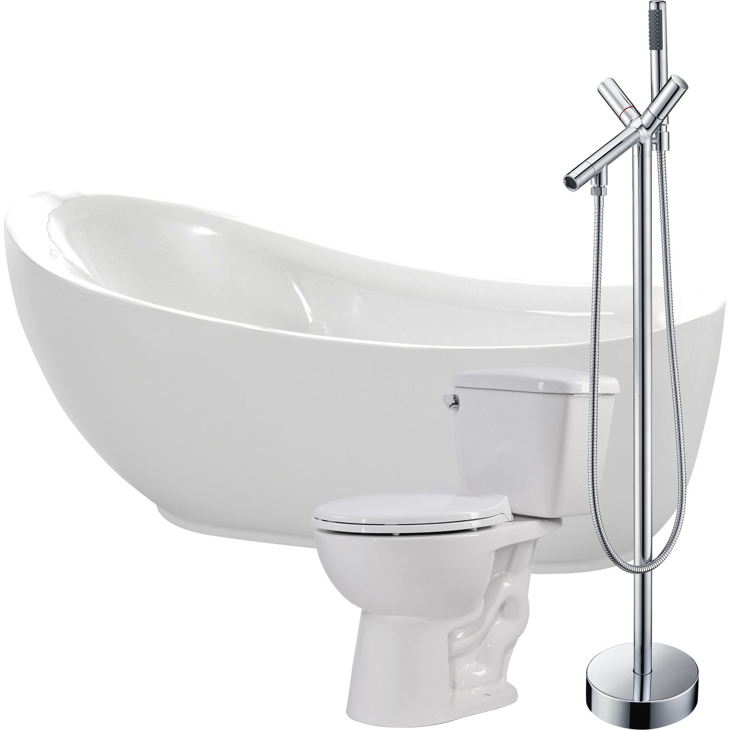 Anzzi Talyah 71 in. Acrylic Soaking Bathtub with Havasu Faucet and Cavalier 1.28 GPF Toilet, 191042030817, FTAZ090-42C-63