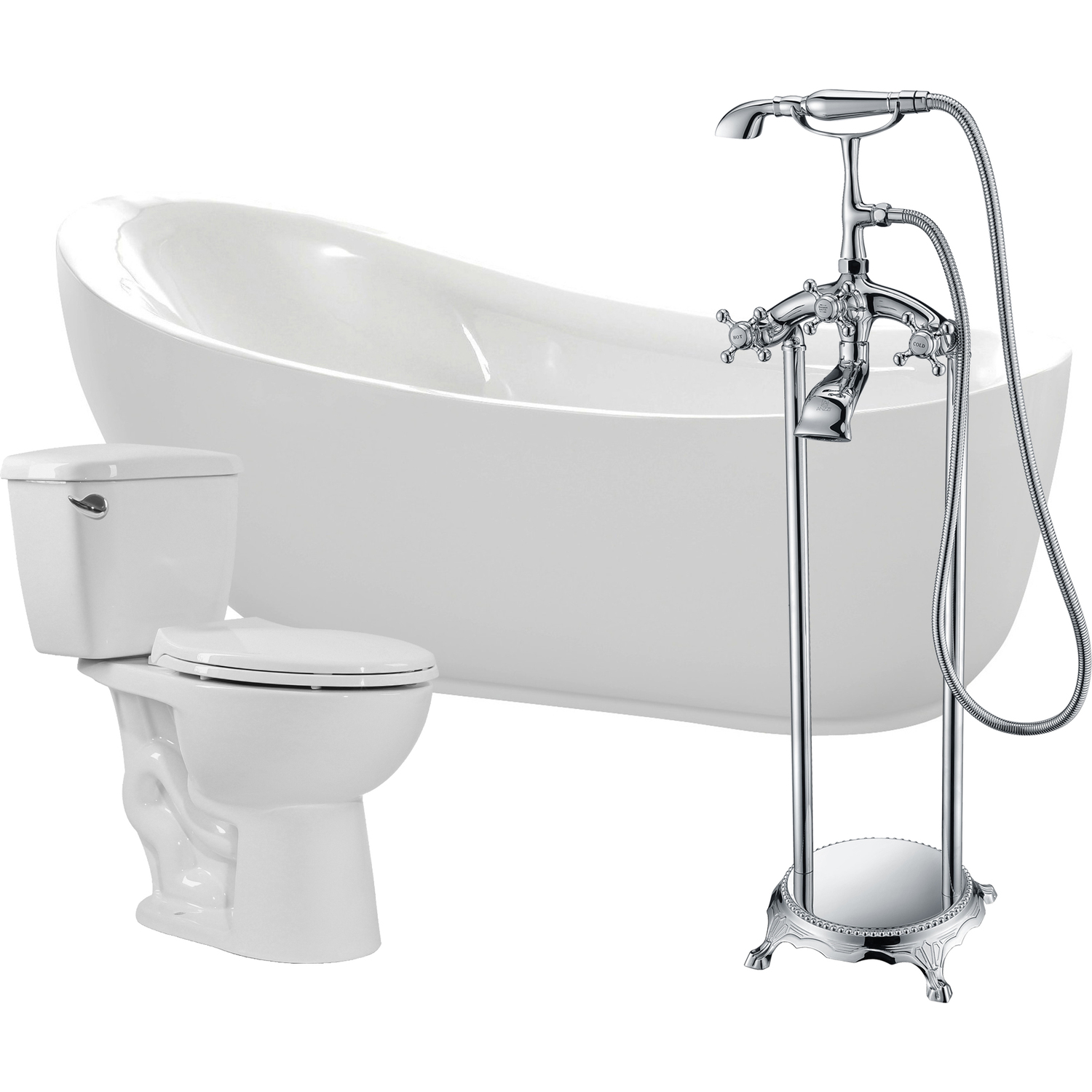 Anzzi Talyah 71 in. Acrylic Soaking Bathtub with Tugela Faucet and Cavalier 1.28 GPF Toilet, 191042030831, FTAZ090-52C-63