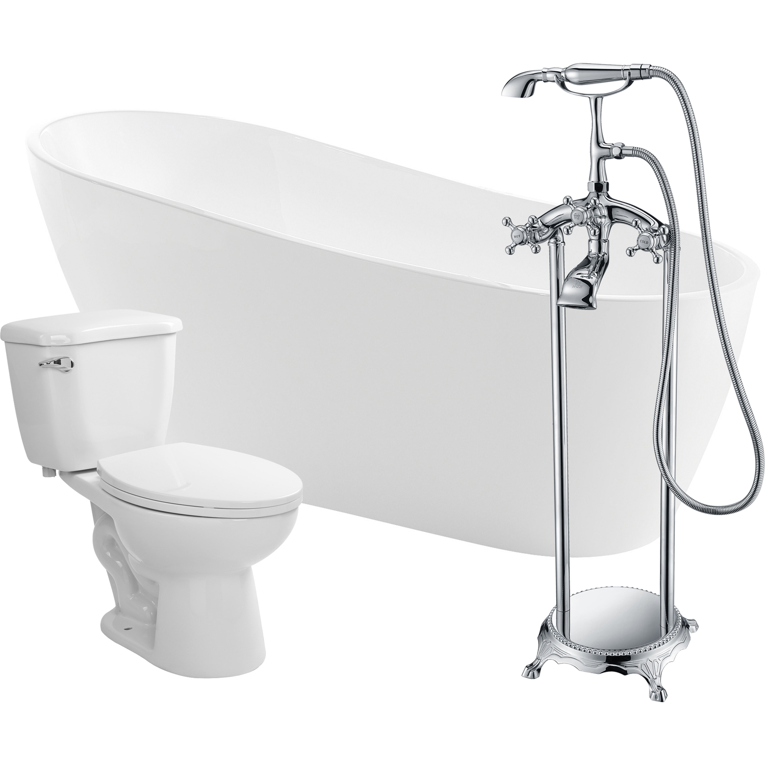 Bring an oasis home with our ANZZI Trend soaking bathtub crafted in white marine grade acrylic with high yield fiberglass reinforcement. Ergonomically designed to cradle the body's form for maximum comfort this tub is styled with a classic and contemporary flair. Relax and drift away while submerged in your personal oasis.One piece acrylic bathtub in glossy whiteBuilt in overflow with included pop up drain in chromeBathtub water capacity: 79.26 gallonsBathtub dimensions: 67 in. L x 31.5 in. W x 28.3 in. HBathtub soaking depth: 17.7 in.Three (3) handle; single (1) hole faucet in a polished chrome finishFaucet spout height: 23.62 in.; spout reach: 6.3 in.; flow rate: 5.1 gpmFaucet includes matching handheld sprayerTwo (2) piece vitreous china in whiteSoft closing elongated seat and cover includedWatersense certified 1.28 gpf flush rate; 12 in. rough-inTo speak to a knowledgeable and dedicated ANZZI specialist simply call 1-844-44-ANZZI or visit us on the web at www.ANZZI.com