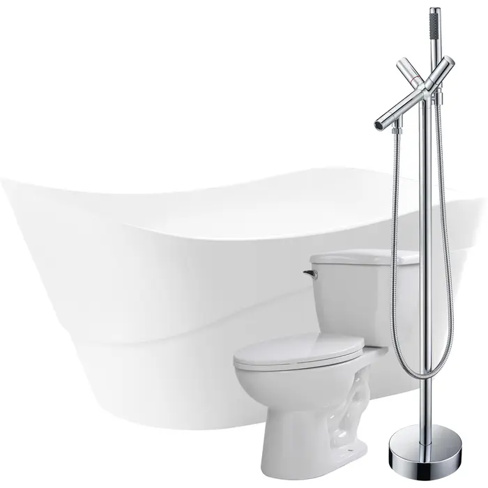 Anzzi Kahl 67 in. Acrylic Flatbottom Non-Whirlpool Bathtub with Havasu Faucet and Kame 1.28 GPF Toilet, 191042039599, FTAZ094-42C-55