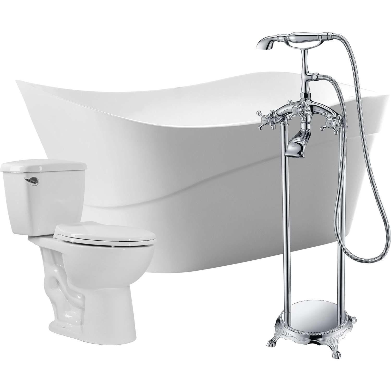 Bring an oasis home with our ANZZI Kahl soaking bathtub crafted in white marine grade acrylic with high yield fiberglass reinforcement. Ergonomically designed to cradle the body's form for maximum comfort this tub is styled with a classic and contemporary flair. Relax and drift away while submerged in your personal oasis.One piece acrylic bathtub in glossy whiteBuilt in overflow with included pop up drain in chromeBathtub water capacity: 81.9 gallonsBathtub dimensions: 67 in. L x 31.5 in. W x 28 in. HBathtub soaking depth: 18.5 in.Three (3) handle; single (1) hole faucet in a polished chrome finishFaucet spout height: 23.62 in.; spout reach: 6.3 in.; flow rate: 5.1 gpmFaucet includes matching handheld sprayerTwo (2) piece vitreous china in whiteSoft closing elongated seat and cover includedWatersense certified 1.28 gpf flush rate; 12 in. rough-inTo speak to a knowledgeable and dedicated ANZZI specialist simply call 1-844-44-ANZZI or visit us on the web at www.ANZZI.com