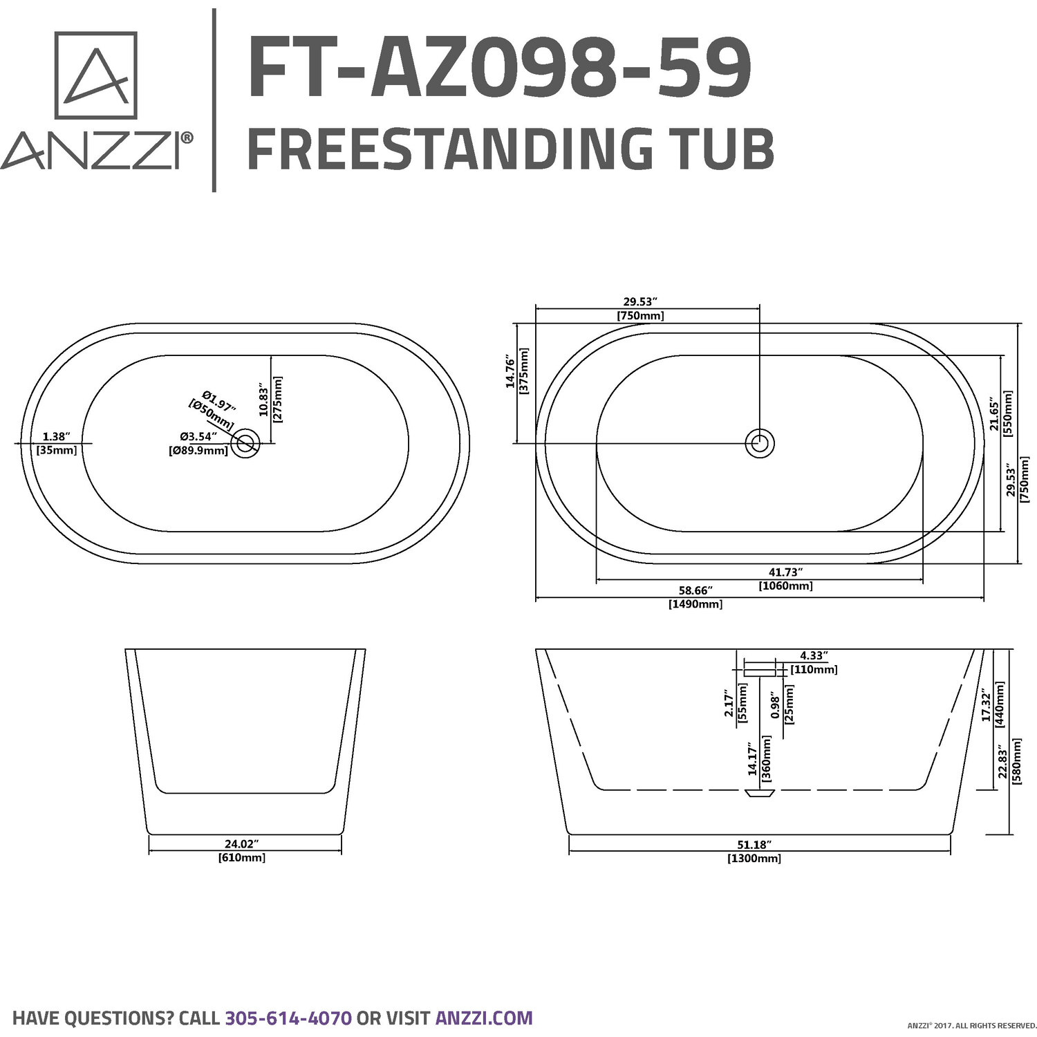 To speak to a knowledgeable ANZZI specialist, simply call 1-844-44-ANZZI or visit us on the web at www.ANZZI.com