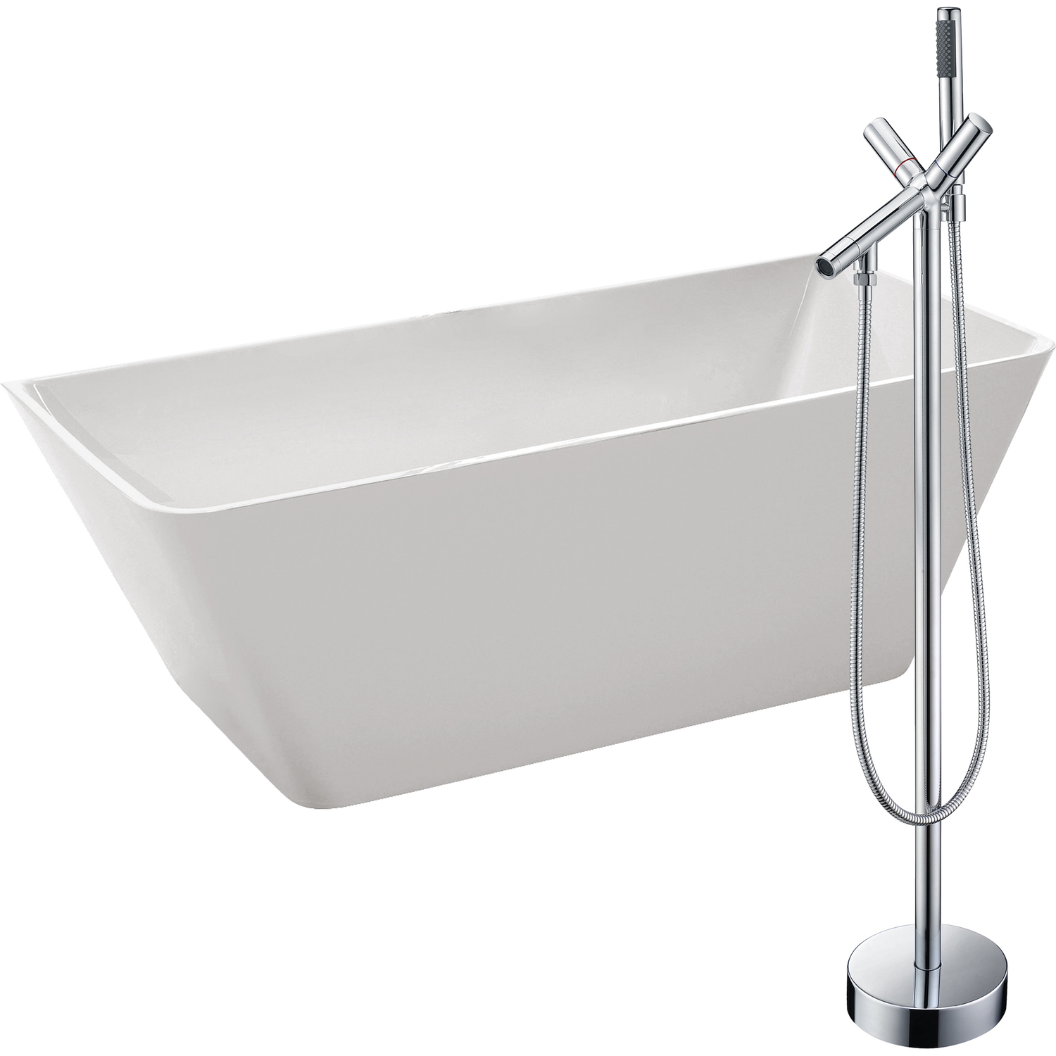 Anzzi Zenith 67 in. Acrylic Soaking Bathtub in White with Havasu Faucet in Polished Chrome, 191042028524, FTAZ099-0042C