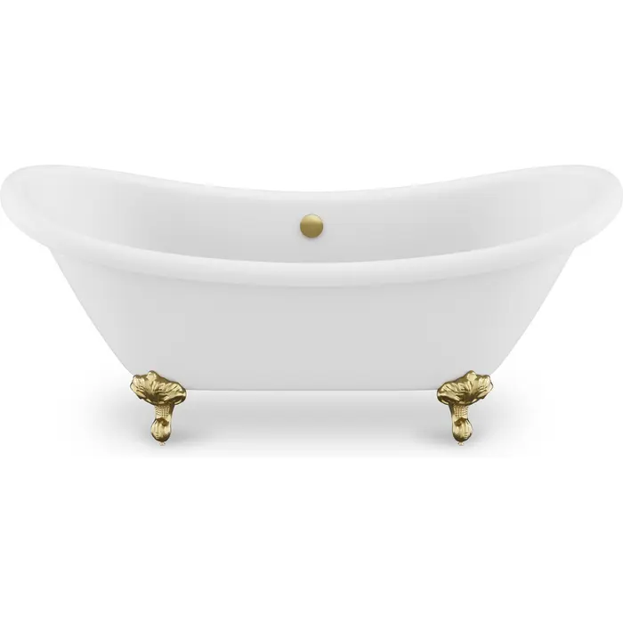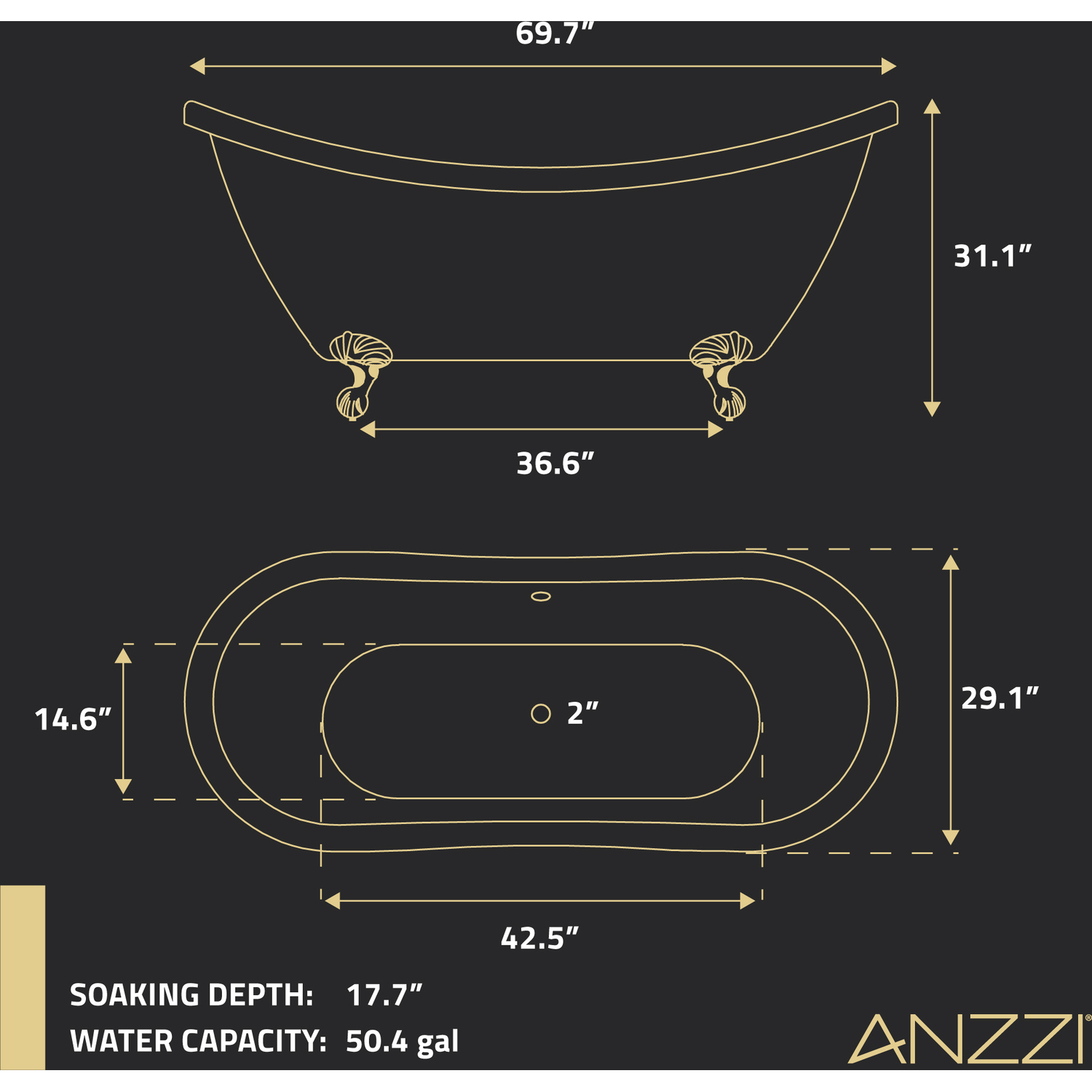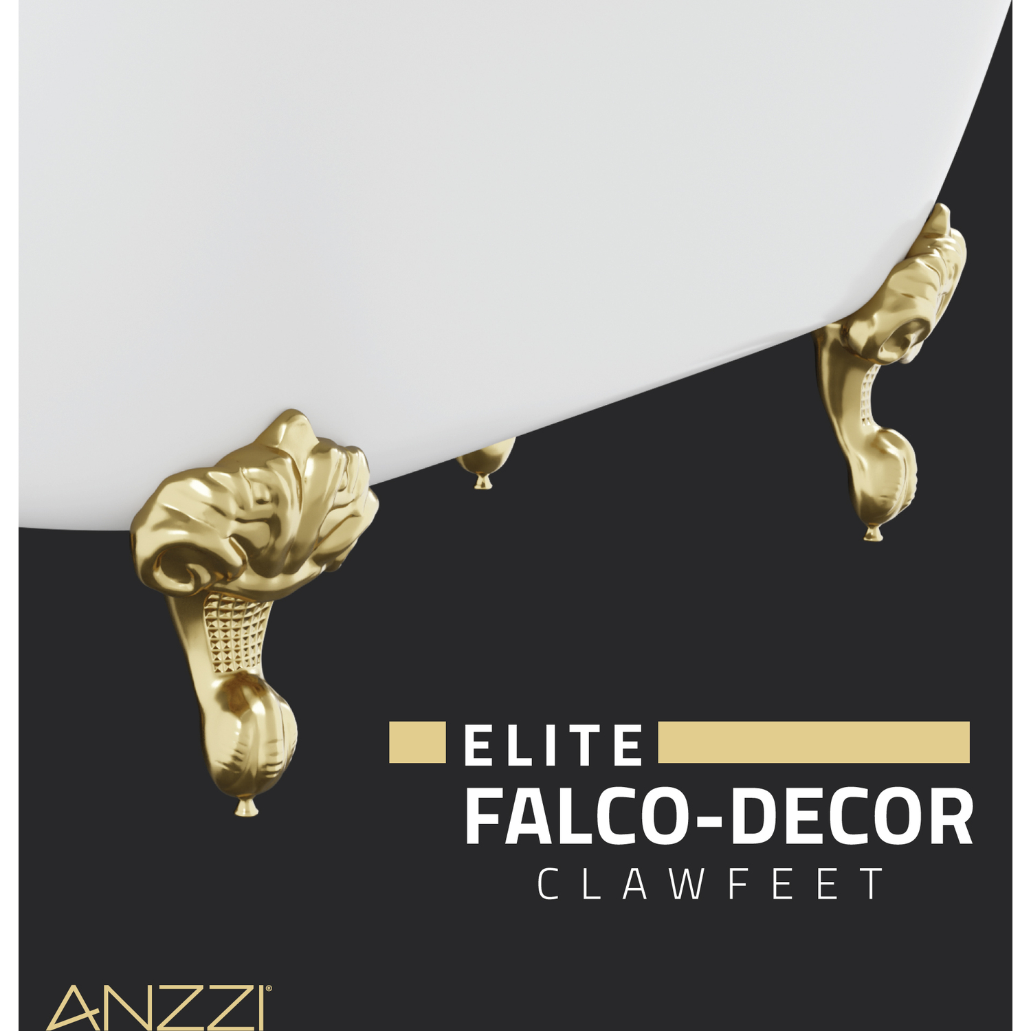 Soak in elegance with our vintage styled ANZZI Falco claw foot one piece acrylic freestanding soaking bathtub in glossy white. This old world design is magnificently and royally crafted in a glossy white high yield acrylic with marine grade fiberglass re-enforcement and its body contoured shape is perfect for long bubble baths. Its four (4) high brushed gold majestic falco-decor feet will surely add class, charm and romance to any bathroom!