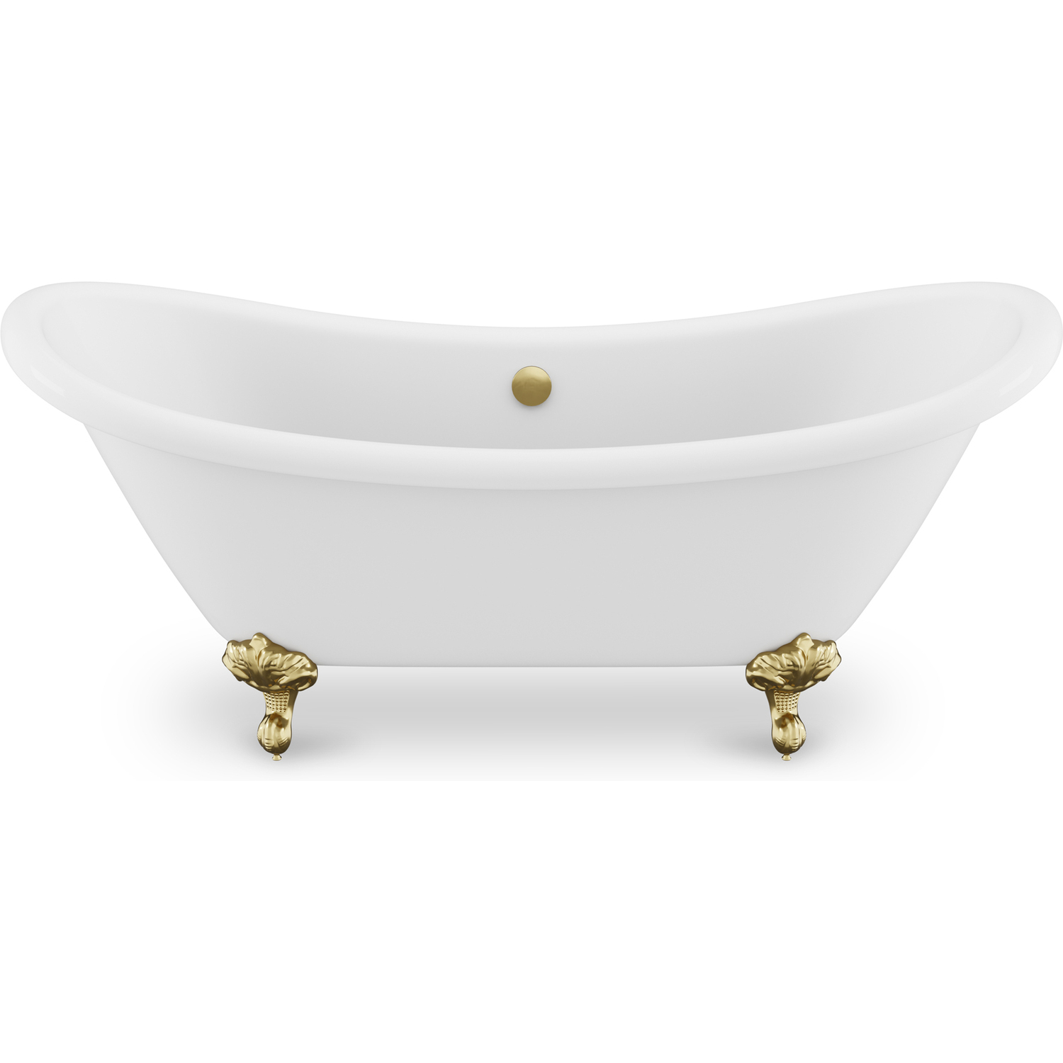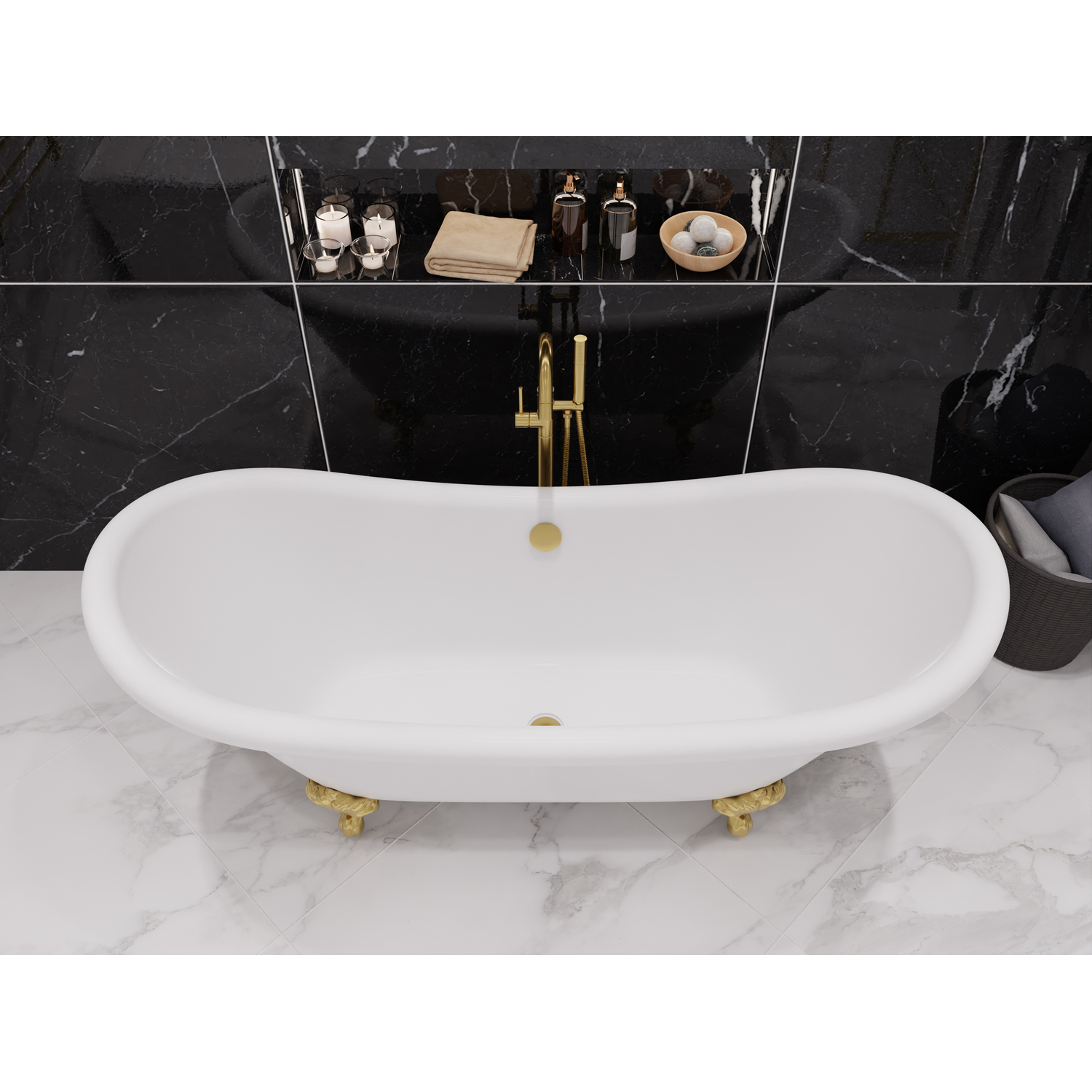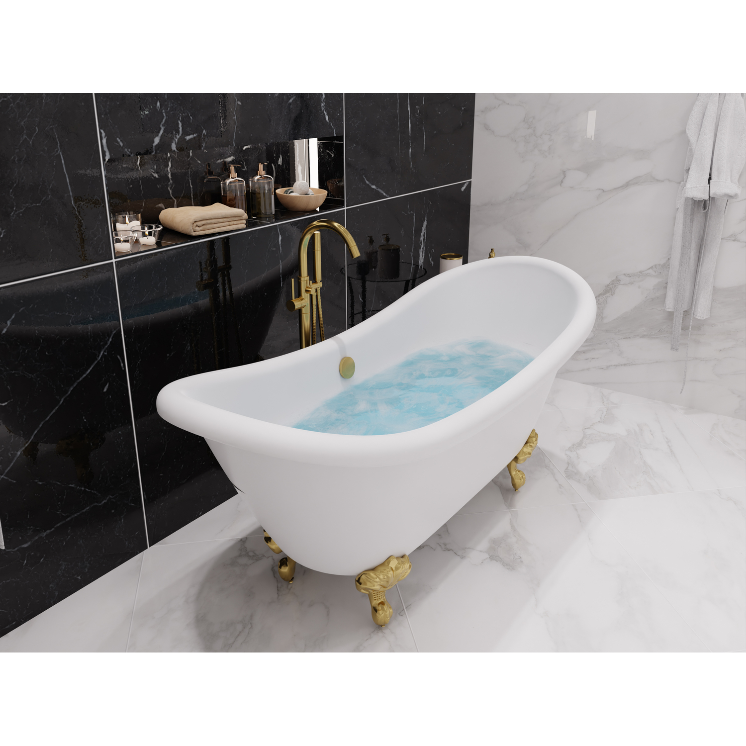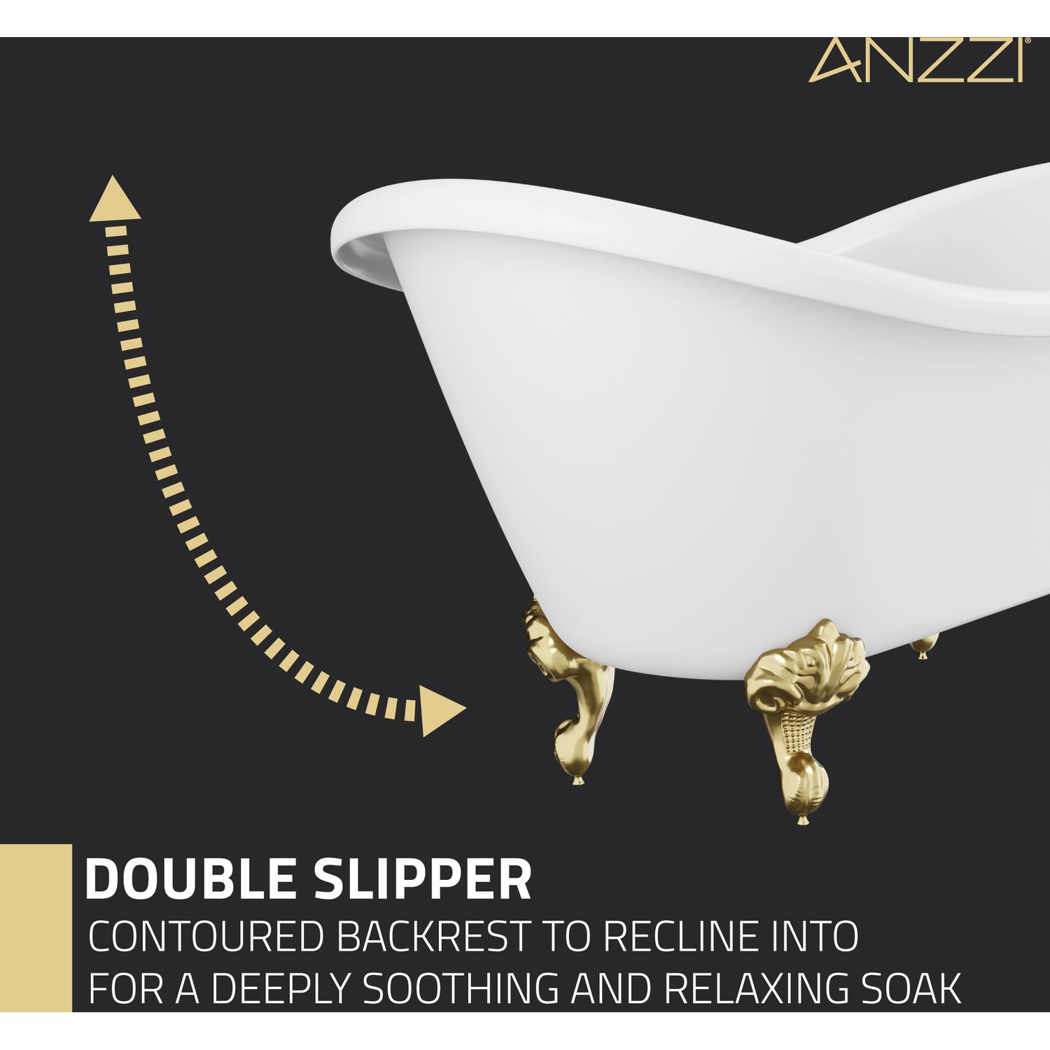 Anzzi Falco 5.8 ft. Claw Foot One Piece Acrylic Freestanding Soaking Bathtub in Glossy White with Brushed Gold Feet, 191042073760, FT-AZ132BG