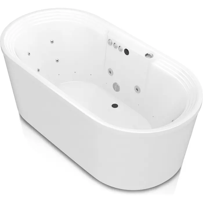 The Sofi series Whirlpool bathtub combines a traditional freestanding design with a contemporary touch of simple forms and shapes. This style creates an elegant, functional centerpiece for your bathroom and a focal point for relaxation. Enjoy the ultimate bathtub experience with 18 luxurious zero profile air jets and 12 low profile water jets.Give us a call at 1-844-44-ANZZI if you have any questions or just need help selecting the right tub for your needsWHIRLPOOL JETTED - Eight (8) Acu-Stream and four (4) directional hydro-therapeutic low profile whirlpool massage jetsAIR JETTED - 18 zero profile pin-hole air jets for a soothing total body aero-therapeutic massageAROMATHERAPY - Experience the deeply soothing sensation of enveloping yourself in the rich fragrance of aroma infused massage bubbles.MAINTENANCE HEATER - Maintains warm and comfortable bathing temperatureFlush easy-push buttons and whirlpool pressure controlMarine grade acrylic with fiberglass reinforcement offers a smooth long lasting shine with superior durabilitySmooth, glossy ultra white acrylic finish with polished chrome trimOverall dimensions: 67.375" L x 33" W x 24" HBasin dimensions: 63" L x 24" WAverage water capacity: 50 gallonsCenter drain with left side pump location10 YEAR WARRANTY - Bathtub shell is protected with a limited 10 year warranty against manufacturer defects; 1 year for parts replacement; 90 days for laborCurbside delivery only. The carrier will only unload the bathtub off the truck and is not responsible for carrying package inside home.
