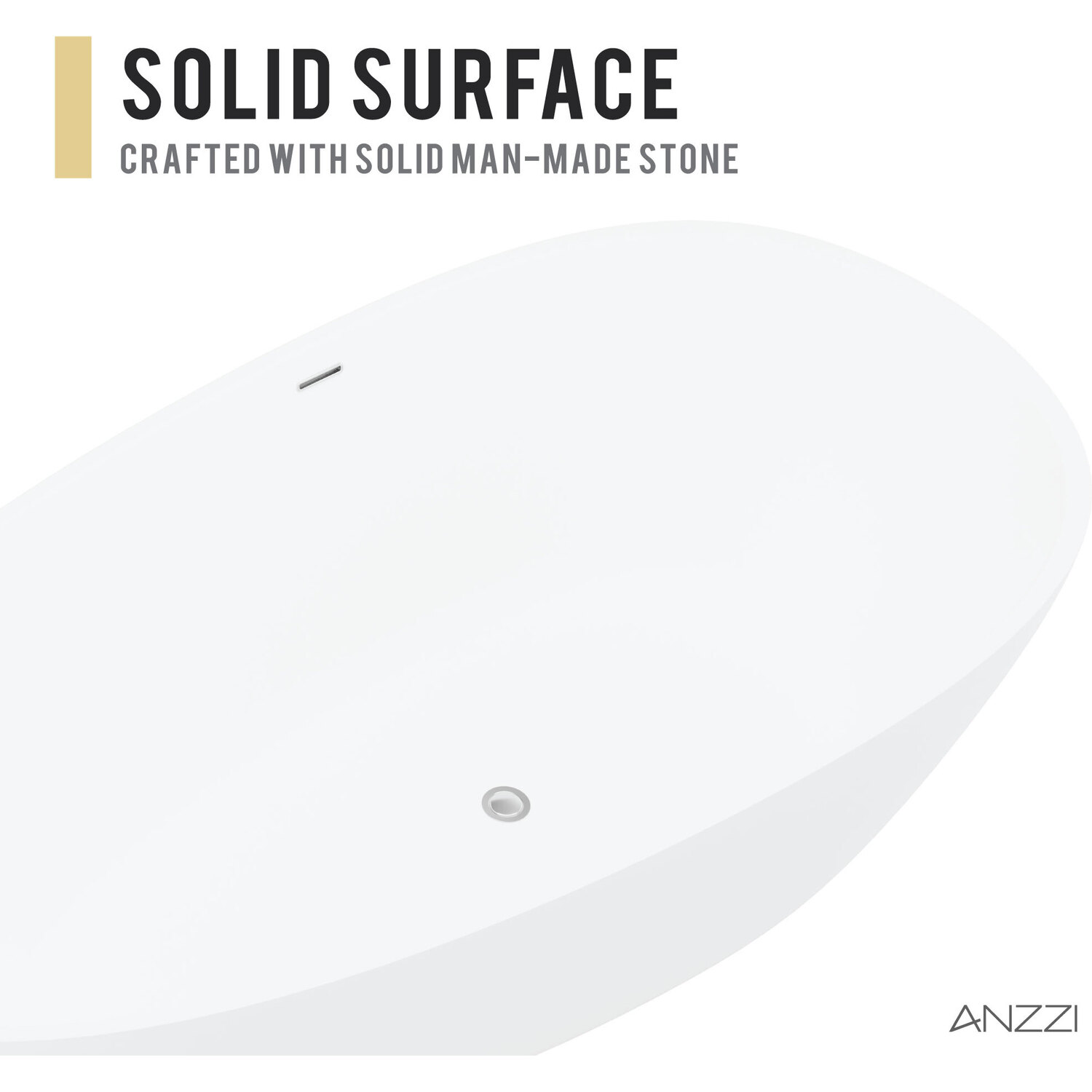 Bring an oasis home with our ANZZI Fiume artificial stone freestanding soaking bathtub. Ergonomically oval designed to cradle the body's form for maximum comfort this tub is styled with a classic and contemporary flair. Relax and drift away while submerged in your personal spa pool.One Piece Man Made ANZZI Stone in White MatteDesigned for floor or wall mounted filler spoutBuilt-in Chrome Overflow and Push Operated Center DrainRHINO ALLOY certifiedDimensions 34 in. L x 67 in. W x 23 in. HSoaking Depth 14.5 inWater Capacity 74 gallonsTub Weight 374 lbs.Already pre-plumbed for easy and straight forward installationShips from factory within 24 hours once order is processedLifetime WarrantyTo speak to a knowledgeable and dedicated ANZZI specialist simply call 1-844-44-ANZZI or visit us on the web at www.ANZZI.com