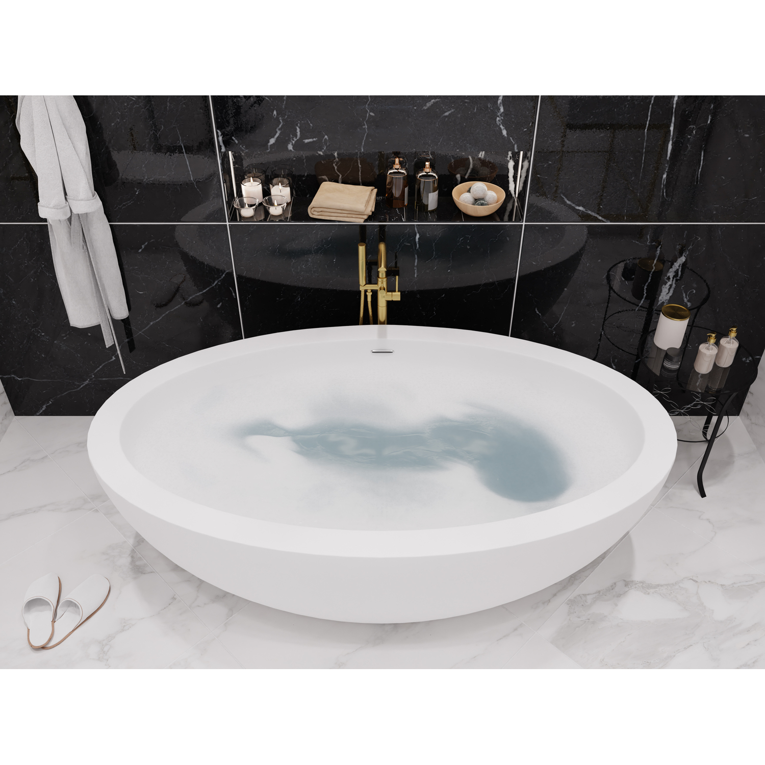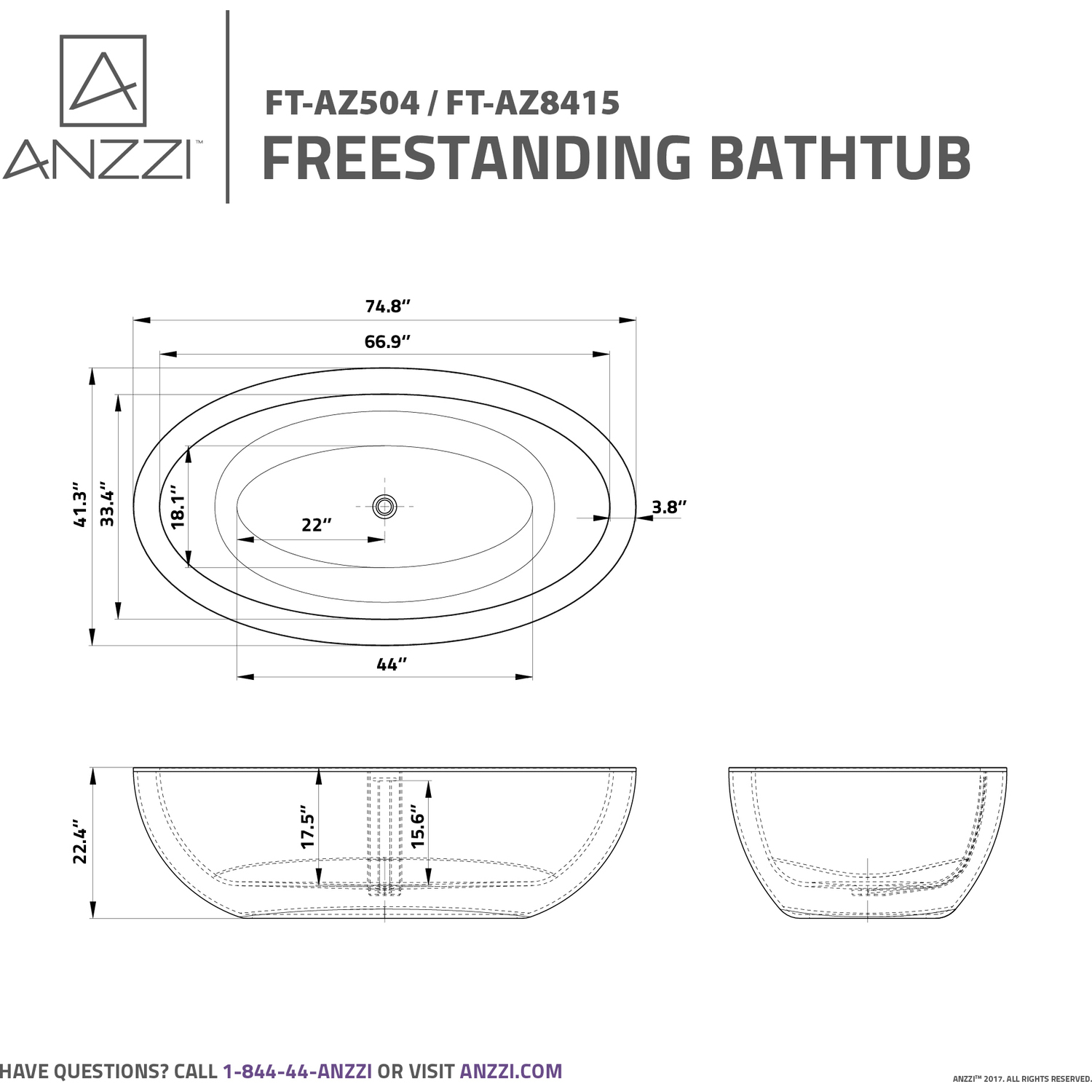 Bring an oasis home with our ANZZI Lusso Solid Surface freestanding soaking bathtub. Ergonomically oval designed to cradle the body's form for maximum comfort this tub is styled with a classic and contemporary flair. Relax and drift away while submerged in your personal spa pool.One Piece Solid Surface man made ANZZI Stone in White MatteDesigned for floor or wall mounted filler spoutBuilt-in Chrome Overflow and Push Operated Center DrainRHINO ALLOY certifiedDimensions 42 in. L x 75 in. W x 23 in. HSoaking Depth 15.5 inWater Capacity 66 gallonsTub Weight 363 lbs.Already pre-plumbed for easy and straight forward installationShips from factory within 24 hours once order is processedLifetime WarrantyTo speak to a knowledgeable and dedicated ANZZI specialist simply call 1-844-44-ANZZI or visit us on the web at www.ANZZI.com
