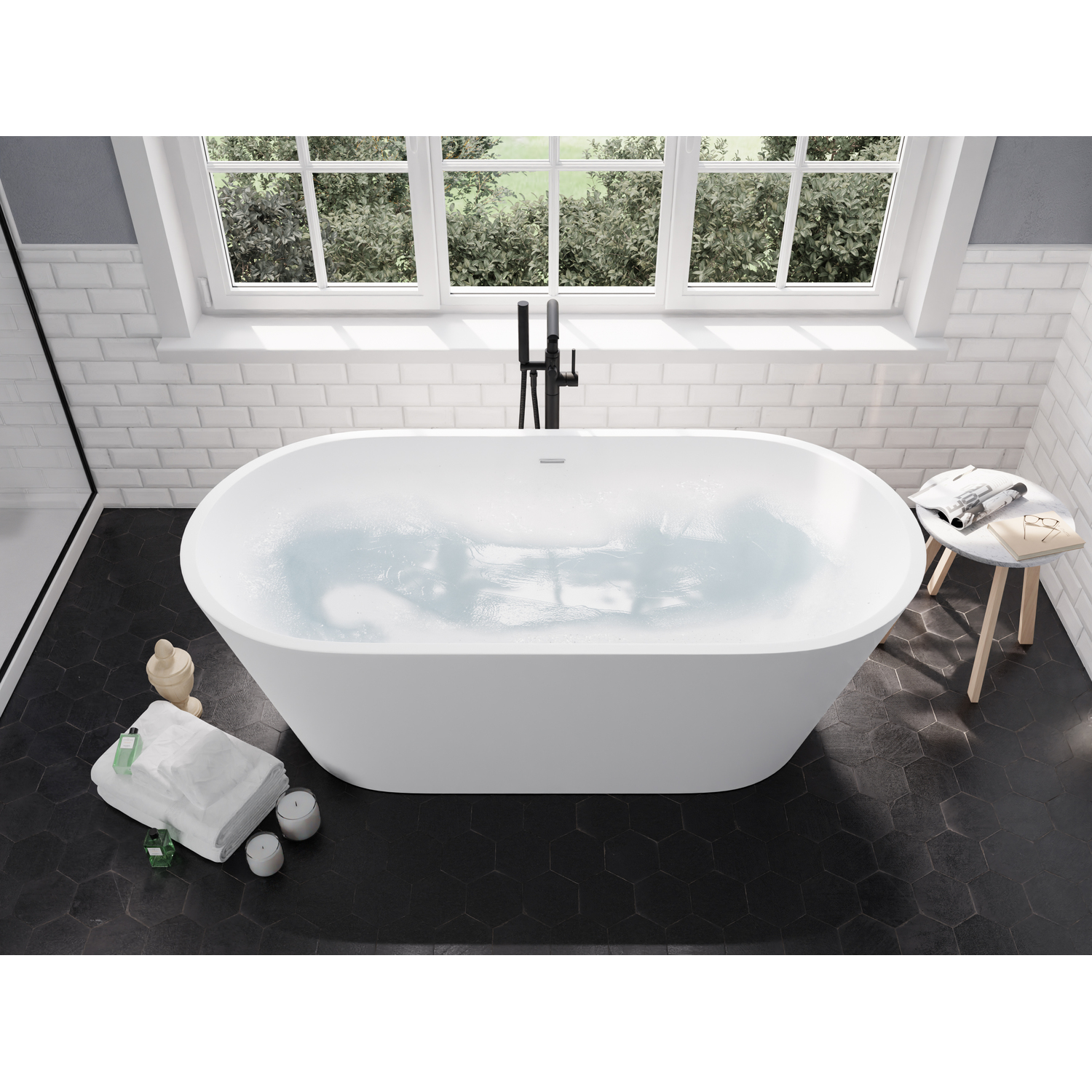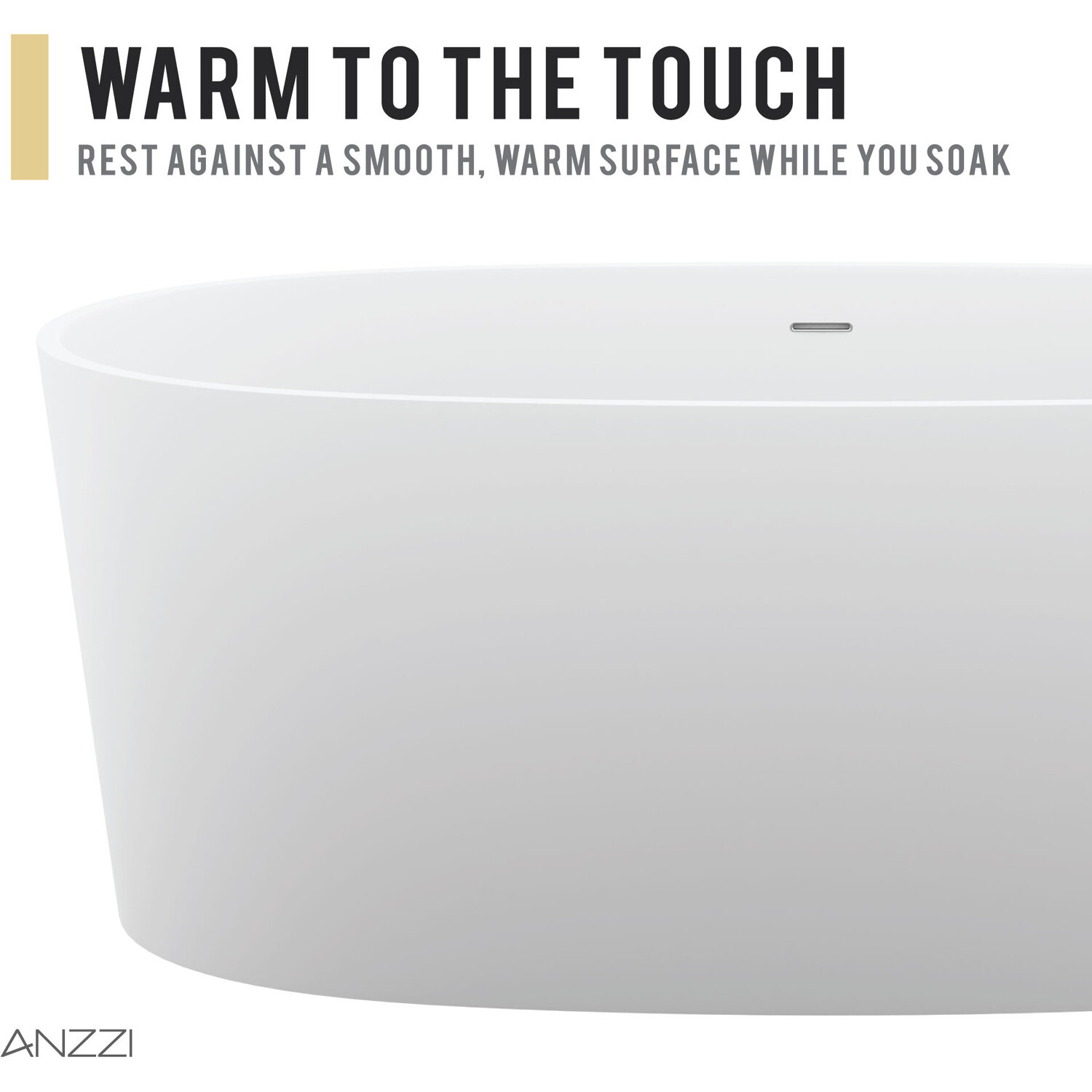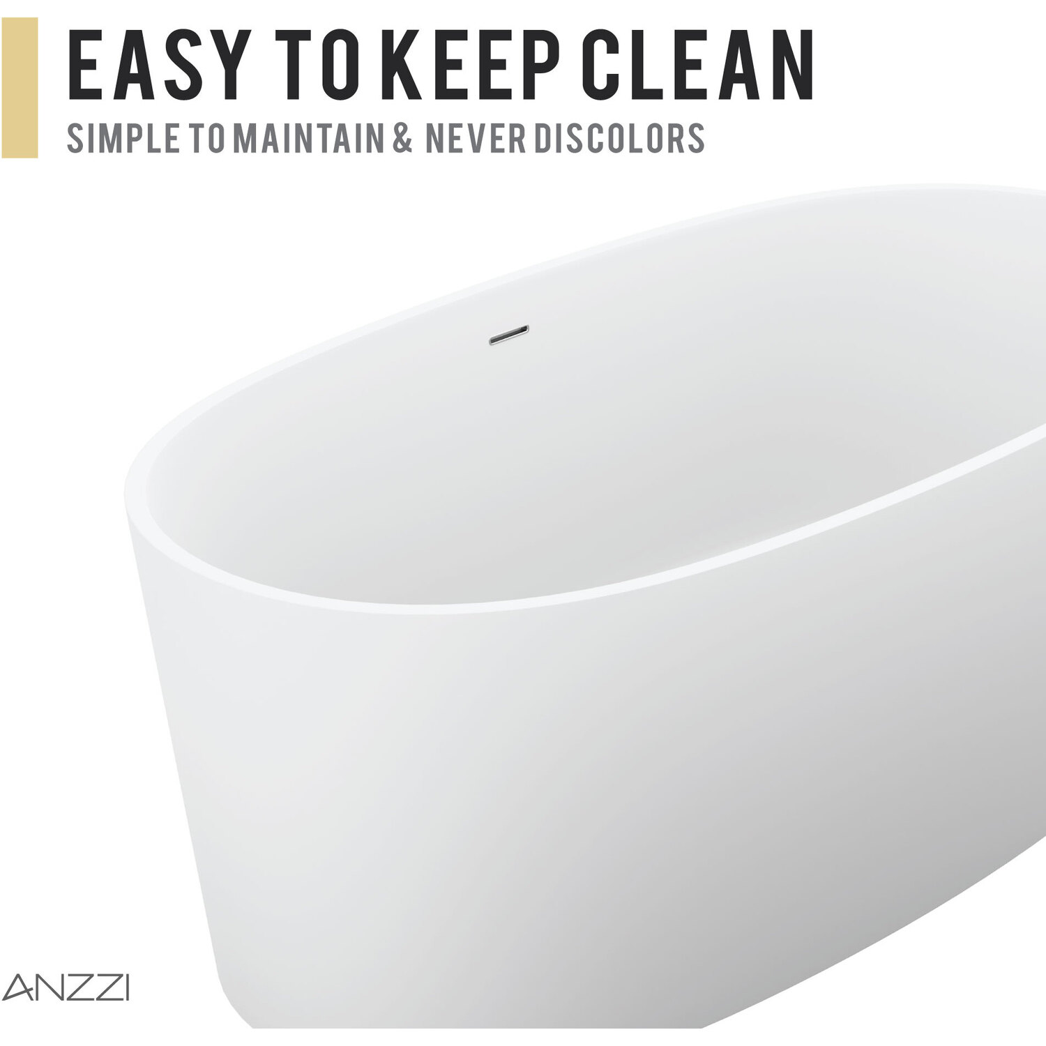 Bring an oasis home with our ANZZI Roccia Solid Surface freestanding soaking bathtub. Ergonomically oval designed to cradle the body's form for maximum comfort this tub is styled with a classic and contemporary flair. Relax and drift away while submerged in your personal spa pool.One Piece Solid Surface man made ANZZI Stone in White MatteDesigned for floor or wall mounted filler spoutBuilt-in Chrome Overflow and Push Operated Center DrainRHINO ALLOY certifiedDimensions 32 in. L x 62 in. W x 24 in. HSoaking Depth 17 inWater Capacity 82 gallonsTub Weight 330 lbs.Already pre-plumbed for easy and straight forward installationShips from factory within 24 hours once order is processedLifetime WarrantyTo speak to a knowledgeable and dedicated ANZZI specialist simply call 1-844-44-ANZZI or visit us on the web at www.ANZZI.com