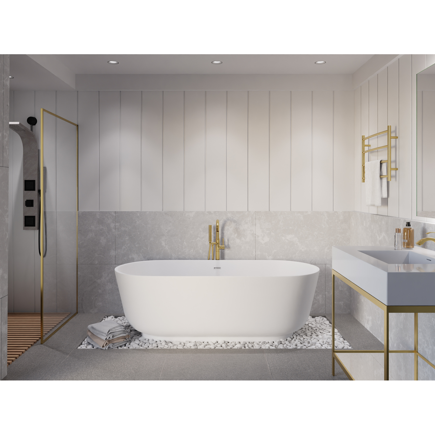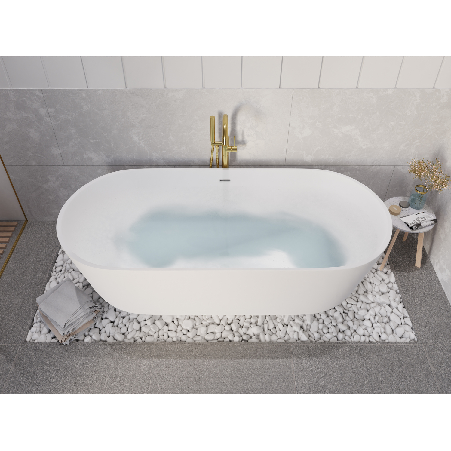 Anzzi Badi 5.9 ft. Solid Surface Center Drain Freestanding Bathtub in Matte White, 191042047525, FT-AZ8402