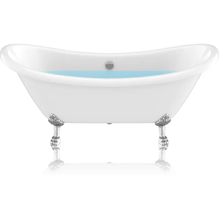 Classic, contemporary and chic all in one, our beautiful Belissima claw foot tub makes a bold statement of style for any bathroom. Soft, sleek lines culminate in a gentle roll around the rim, complimented by the striking contrast of chrome claw feet. The Double slipper design positions faucet and drain in the middle of the tub, giving you the freedom to lounge on either side. Our expert craftsmanship is backed by a limited lifetime warranty that guarantees you’ll enjoy your tub for years to come.High-quality acrylic construction is supremely durableGlossy White finish resists dulling, cracking and fadingPolished chrome finished Lion's style claw feetLarge freestanding design allows for full-body immersionClaw feet adjust for perfect leveling on any flooringOverflow includedCenter drainExterior dimensions: 69.29”L x 28.35”W x 30.12”HSitting area: 42.52"L x 15.75"WSoaking depth: 14"40 gal. capacityLifetime Manufacturer's WarrantyTo speak to a knowledgeable and dedicated ANZZI specialist simply call 1-844-44-ANZZI or visit us on the web at www.ANZZI.com