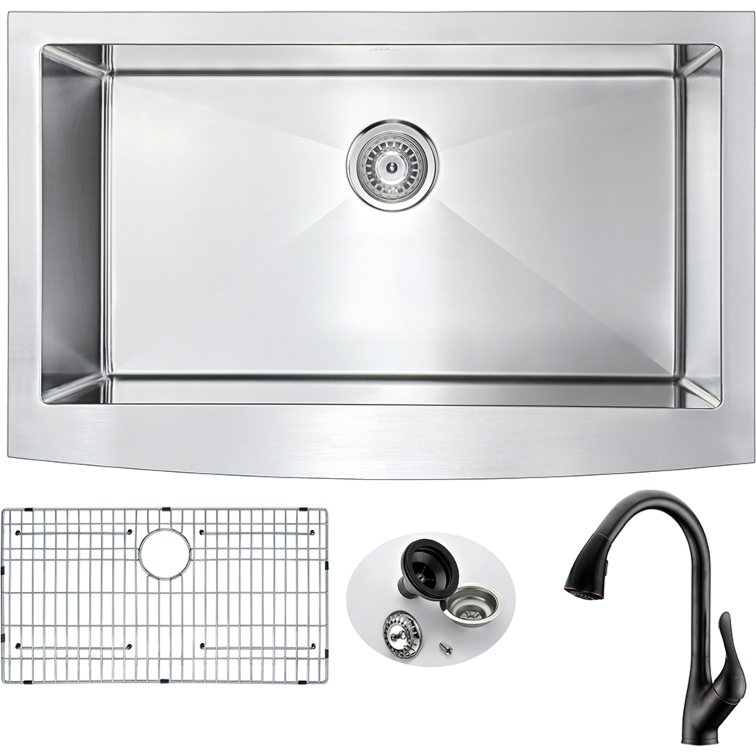 Anzzi Elysian Farmhouse 32 in. Kitchen Sink with Accent Faucet in Oil Rubbed Bronze, 848308083208, K33201A-031O