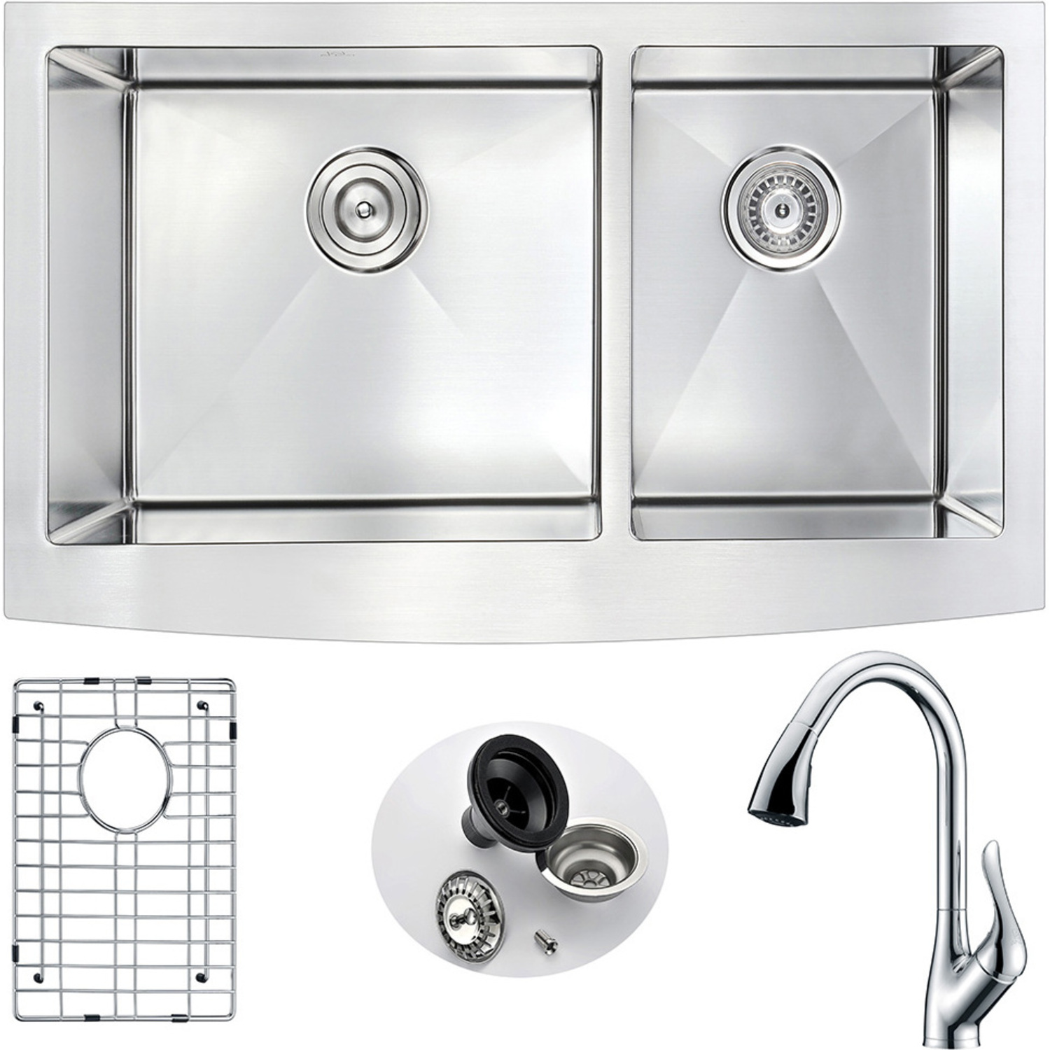 ANZZI presents the 36 in. ELYSIAN SERIES hand crafted farmhouse kitchen sink. Representing the latest in modern home fixture designs and traditional European crafting technique this stunning display of artistry is hand shaped to perfection using RHINO ALLOY certified 18-Gauge 304 stainless steel. Only ANZZI hand crafted farmhouse kitchen sinks utilize RHINO ALLOY certified materials for superior strength and quality. The cavernous 60/40 deep soaking dual basin will comfortably accommodate the largest dish loads including pots, pans and more. And every ANZZI sink features extra-large Echo-STOP sound dampening pads and a layer of protective composite coating to further quiet noise and prevent condensation. We have paired this sink with the ANZZI Accent Kitchen Sink Faucet. Each ANZZI faucet has been certified as Water Sense approved with solid brass construction and valve included. Well defined diversion lines ensure quick and total water drainage and the subtly curved corners allow of easier cleaning. ANZZI carries a proud tradition of crafting long lasting, quality home fixtures. With ANZZI perfection is our tradition.