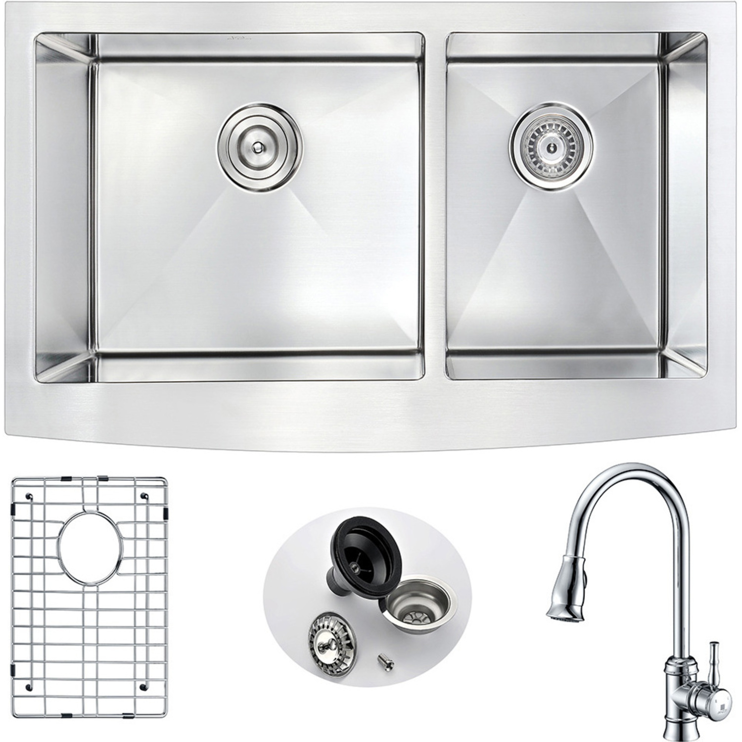 ANZZI presents the 36 in. ELYSIAN SERIES hand crafted farmhouse kitchen sink. Representing the latest in modern home fixture designs and traditional European crafting technique this stunning display of artistry is hand shaped to perfection using RHINO ALLOY certified 18-Gauge 304 stainless steel. Only ANZZI hand crafted farmhouse kitchen sinks utilize RHINO ALLOY certified materials for superior strength and quality. The cavernous 60/40 deep soaking dual basin will comfortably accommodate the largest dish loads including pots, pans and more. And every ANZZI sink features extra-large Echo-STOP sound dampening pads and a layer of protective composite coating to further quiet noise and prevent condensation. We have paired this sink with the ANZZI Mend Kitchen Sink Faucet. Each ANZZI faucet has been certified as Water Sense approved with solid brass construction and valve included. Well defined diversion lines ensure quick and total water drainage and the subtly curved corners allow of easier cleaning. ANZZI carries a proud tradition of crafting long lasting, quality home fixtures. With ANZZI perfection is our tradition.