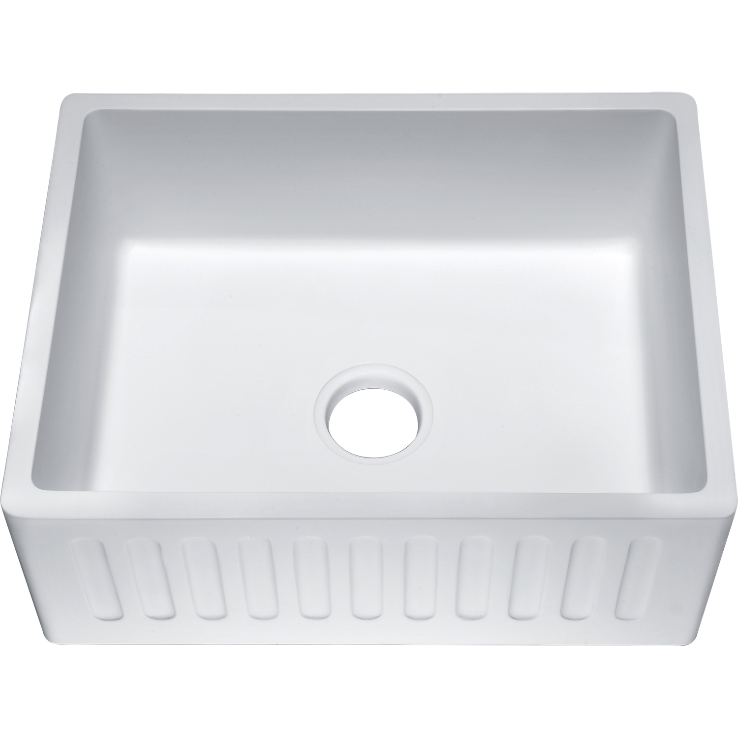 Anzzi Roine Farmhouse Reversible Apron Front Solid Surface 24 in. Single Basin Kitchen Sink in White, 191042004085, K-AZ221-1A