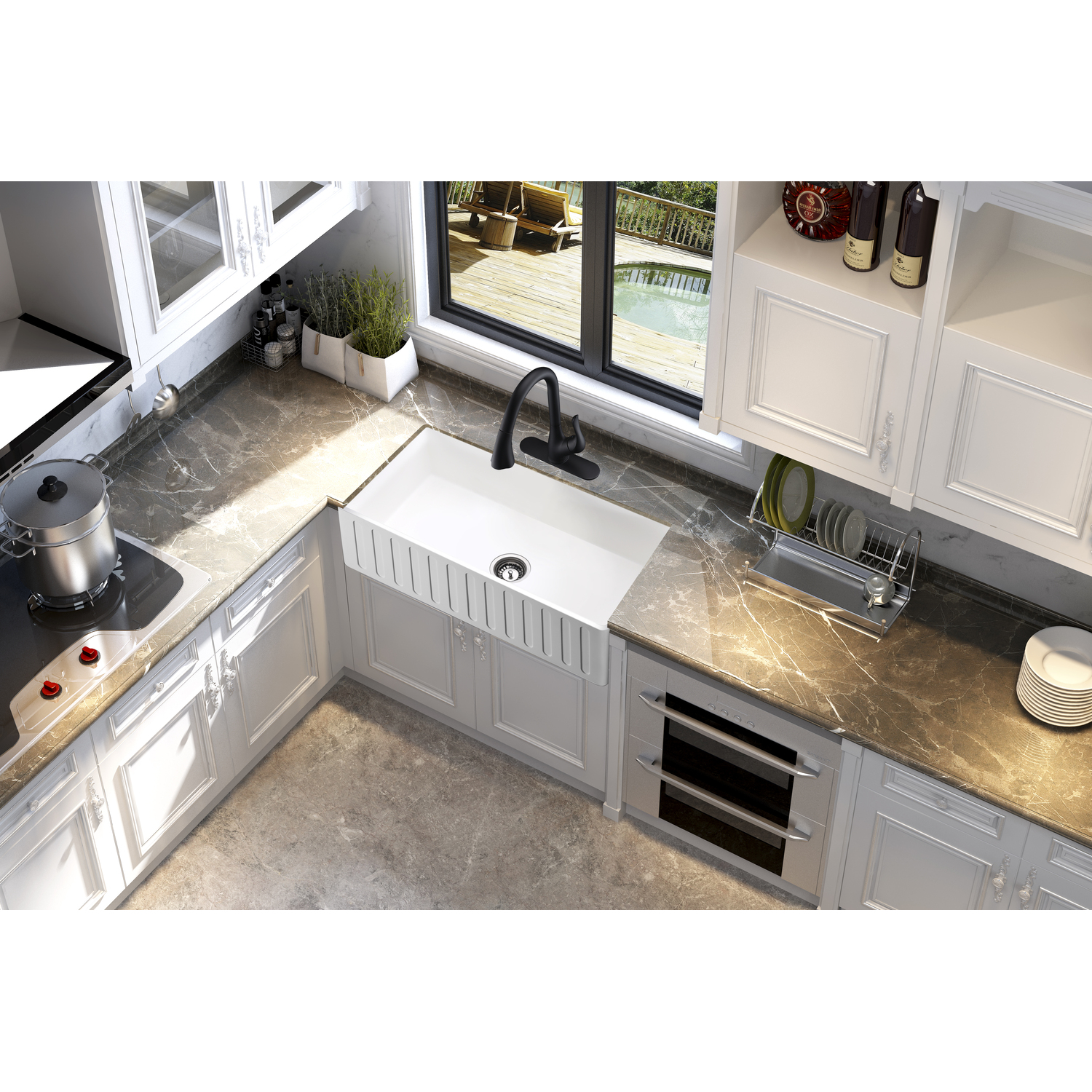 Anzzi Roine Farmhouse Reversible Apron Front Solid Surface 36 in. Single Basin Kitchen Sink in White, 191042041103, K-AZ226-1A