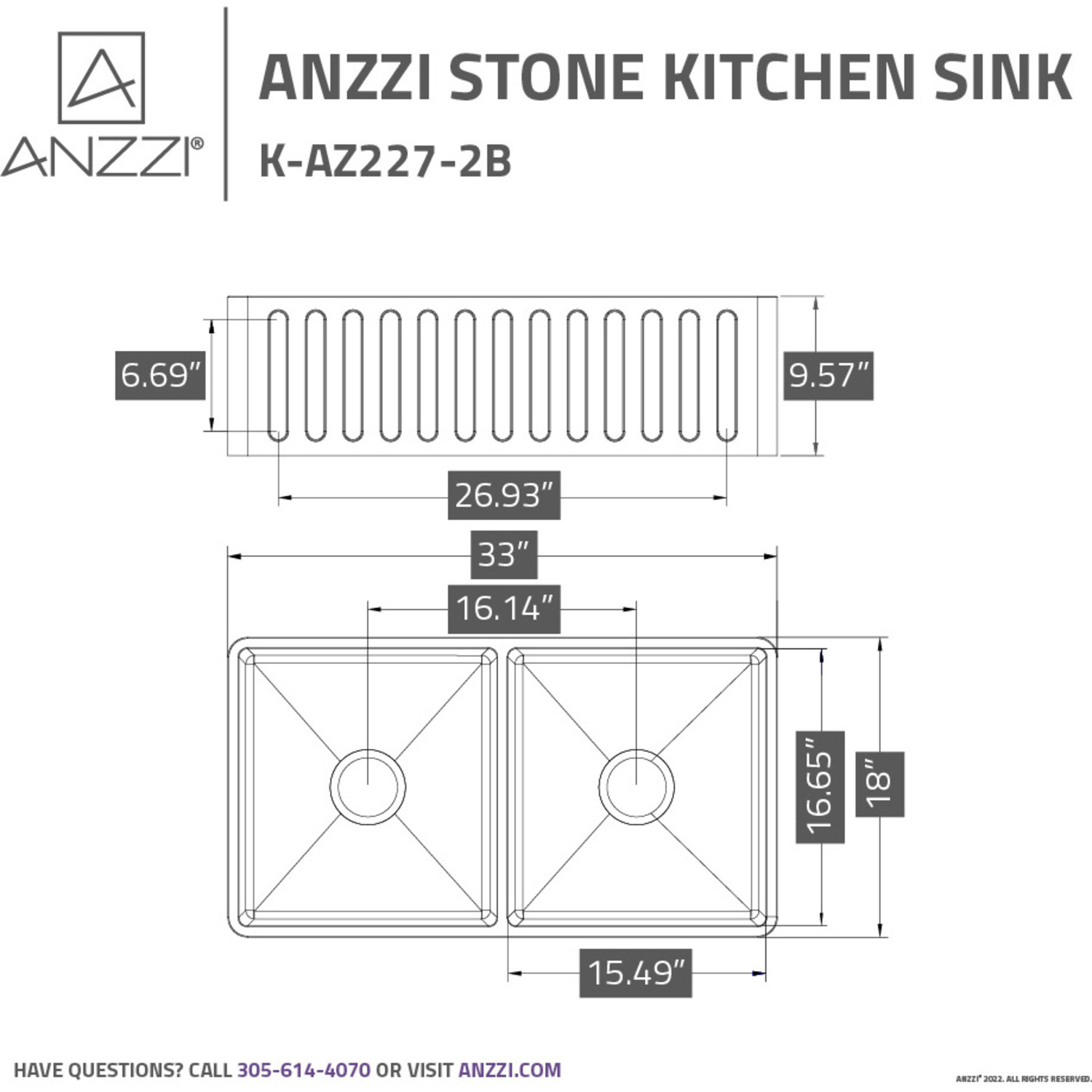 The renaissance of kitchen hardware has arrived with ANZZI’s ROINE series kitchen sinks. Crafted of rich Solid Surface man made ANZZI stone the ROINE grants a smooth, non-porous surface that is warm and inviting to the touch. But the beauty of an ANZZI stone surface is its uncanny resilience to germs, stains, discoloration, visible chipping and more. The solid core nature allows you to easily sand away scuffs and marks without effecting the finish. ANZZI sinks are crafted to stand the test of time both structurally and aesthetically.Easy to clean, low maintenance non-porous surface resists germs, stains, fire and chemicalsRHINO ALLOY certified ANZZI Stone craftsmanship for unrivaled durabilityReversible smooth or decorative front installationSeamless 10 mm radius corners for easier cleaning3.5 in. drain openingExterior dimensions: 33 in. L x 18 in. W x 9.5 in. HBasin dimensions: 16.65 in. L x 15.49 in. W x 8.35 in. HSmooth and warm to the touch matte finishShips from factory within 24 hours once order is processedLifetime warrantyTo speak to a knowledgeable and dedicated ANZZI specialist simply call 1-844-44-ANZZI or visit us on the web at www.ANZZI.comDue to a +/- 5 mm tolerance in the measurements it is recommended that cutting or building the countertop is not performed until the sink is received and measured