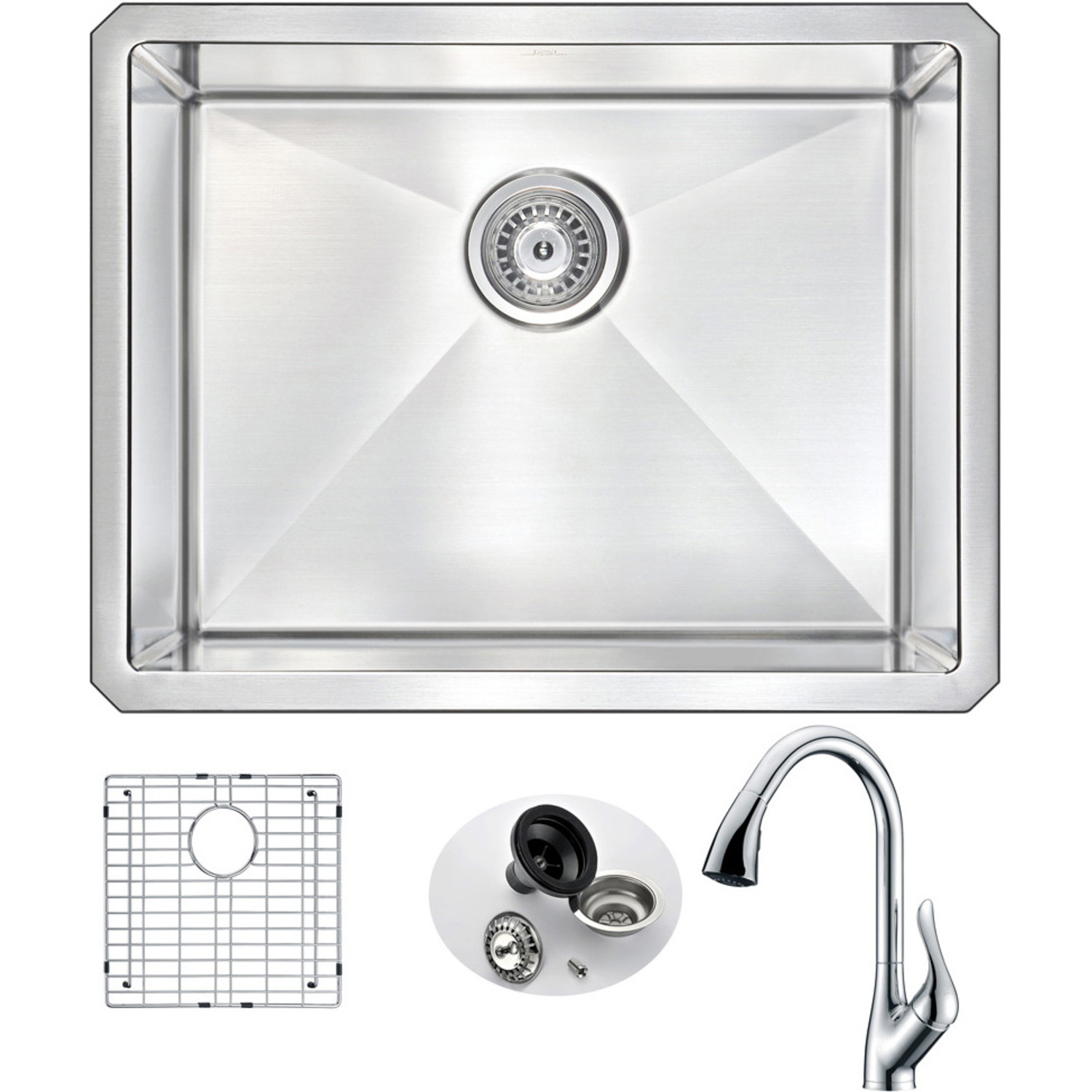 Anzzi VANGUARD Undermount 23 in. Single Bowl Kitchen Sink with Accent Faucet in Polished Chrome, 848308081389, KAZ2318-031