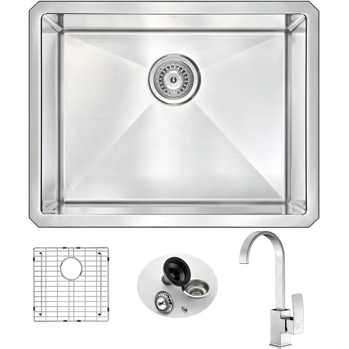 ANZZI presents the 23 in. VANGUARD SERIES hand crafted under mount kitchen sink with faucet combination. Representing the latest in modern home fixture designs and traditional European crafting technique this stunning display of artistry is hand shaped to perfection using RHINO ALLOY certified 16-Gauge 304 stainless steel. Only ANZZI hand crafted kitchen sinks utilize RHINO ALLOY certified materials for superior strength and quality. The cavernous deep soaking basin will comfortably accommodate the largest dish loads including pots, pans and more. And every ANZZI sink features extra-large Echo-STOP sound dampening pads and a layer of protective composite coating to further quiet noise and prevent condensation. We have paired this sink with the ANZZI Opus Kitchen Sink Faucet. Each ANZZI faucet has been certified as Water Sense approved with solid brass construction and valve included. Well defined diversion lines ensure quick and total water drainage and the subtly curved corners allow of easier cleaning. ANZZI carries a proud tradition of crafting long lasting, quality home fixtures. With ANZZI perfection is our tradition.
