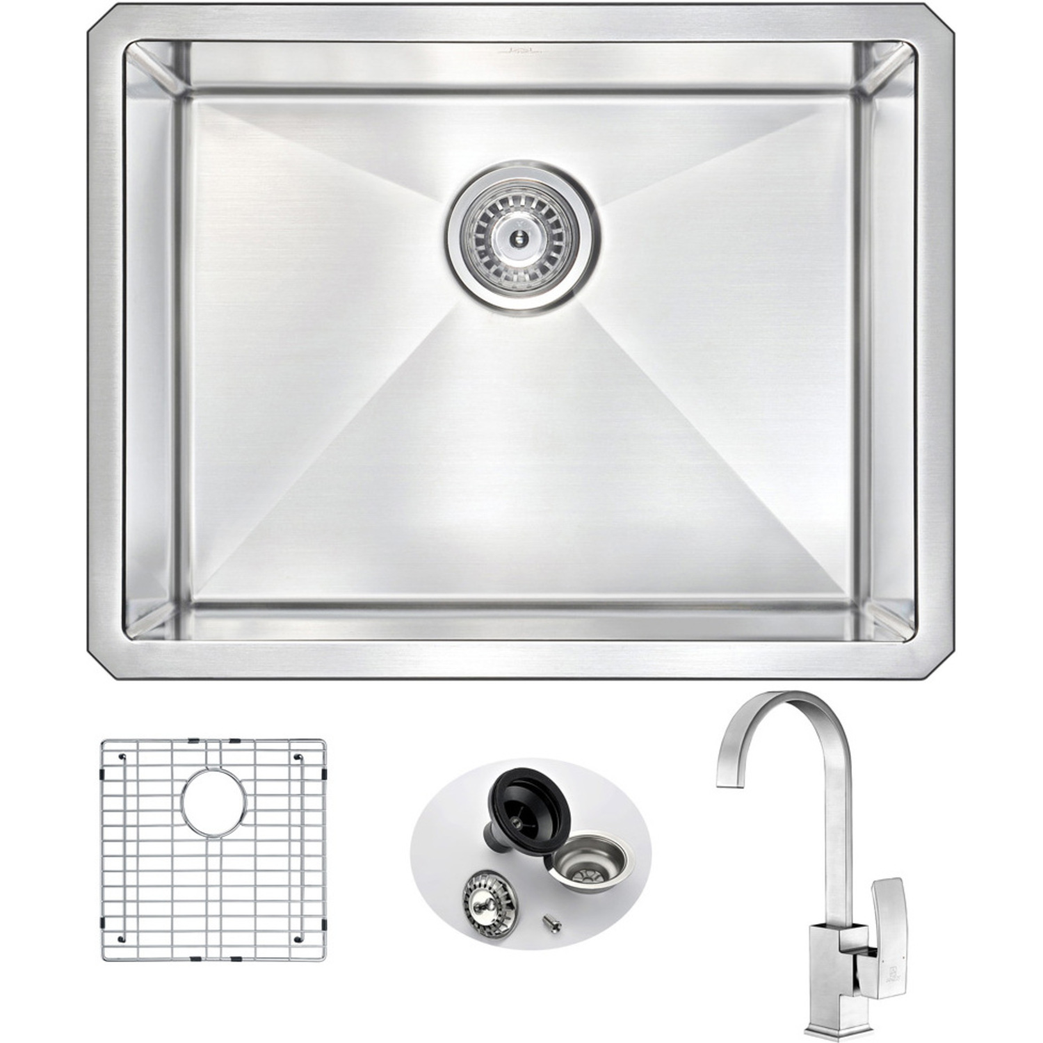 Single deep soak basin openingANZZI Opus kitchen sink faucet KF-AZ035BNANZZI Echo-STOP sound absorbing technology drastically reduces noiseTriple coated underside shielding prevents condensationDimensions: 23 in. L x 18 in. W x 10 in. H (Basin Depth: 10 in.)Minimum Cabinet Space: 26 in.Standard 3.5 in. drain openingLaser precise diverting lines allow for more efficient water drainageQuality assured handmade constructionRHINO ALLOY certified 304 Stainless Steel with 16 gauge strengthcUPC certifiedLustrous Satin finishIncludes perfect fitting strainer and drain assembly, insert strainer basket, mounting hardwareShips from factory within 24 hours once order is processed