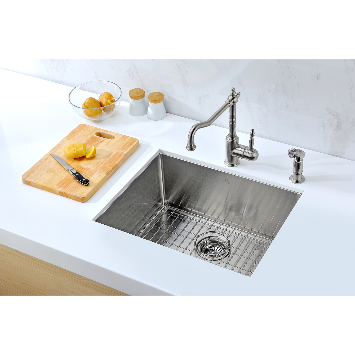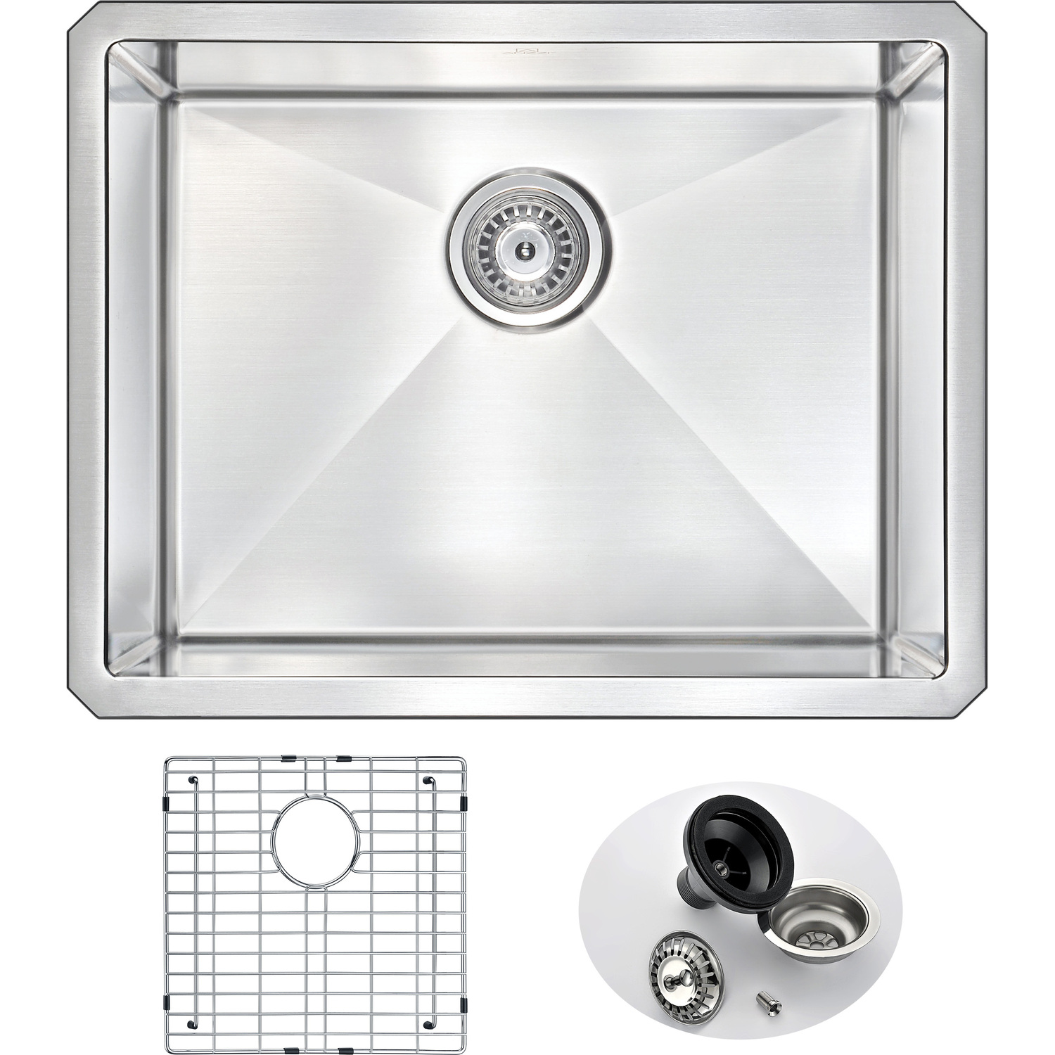 Anzzi Vanguard Undermount Stainless Steel 23 in. 0-Hole Single Bowl Kitchen Sink in Brushed Satin, 848308073476, K-AZ2318-1A
