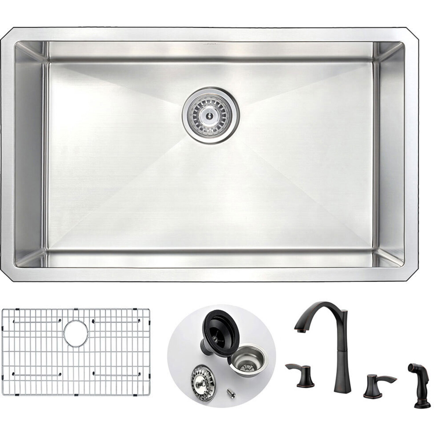 Anzzi VANGUARD Undermount 30 in. Single Bowl Kitchen Sink with Soave Faucet in Oil Bronze, 848308082713, KAZ3018-032O
