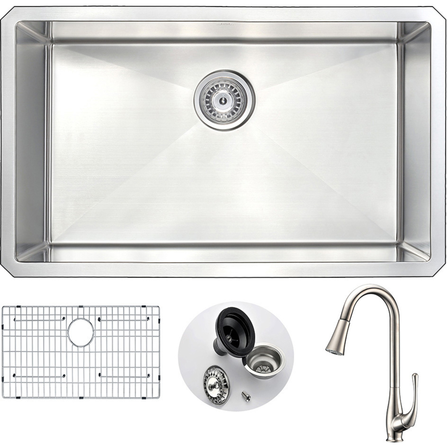 Anzzi VANGUARD Undermount 30 in. Single Bowl Kitchen Sink with Singer Faucet in Brushed Nickel, 848308082546, KAZ3018-042