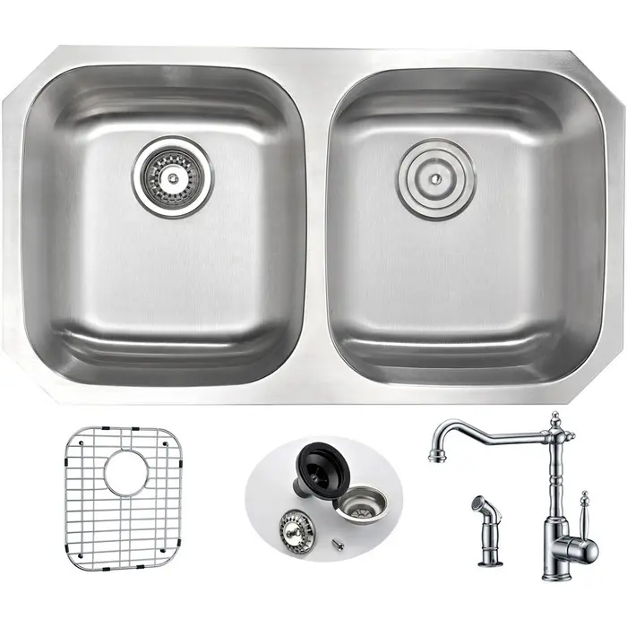 ANZZI presents the 32 in. MOORE SERIES precision pressed under mount kitchen sink. Representing the latest in modern home fixture designs and traditional European crafting technique this stunning display of artistry is pressed and shaped to perfection using RHINO ALLOY certified 16-Gauge 304 stainless steel. Only ANZZI precision pressed kitchen sinks utilize RHINO ALLOY certified materials for superior strength and quality. The cavernous 50/50 deep soaking dual basin will comfortably accommodate the largest dish loads including pots, pans and more. And every ANZZI sink features extra-large Echo-STOP sound dampening pads and a layer of protective composite coating to further quiet noise and prevent condensation. We have paired this sink with the ANZZI Winston Kitchen Sink Faucet. Each ANZZI faucet has been certified as Water Sense approved with solid brass construction and valve included. Well defined diversion lines ensure quick and total water drainage and the subtly curved corners allow of easier cleaning. ANZZI carries a proud tradition of crafting long lasting, quality home fixtures. With ANZZI perfection is our tradition.