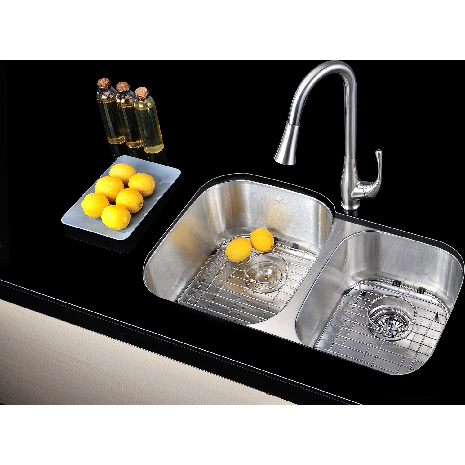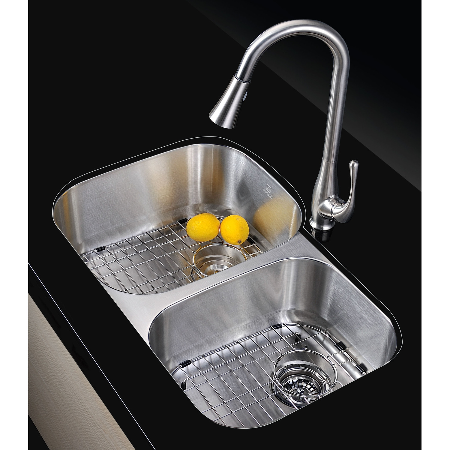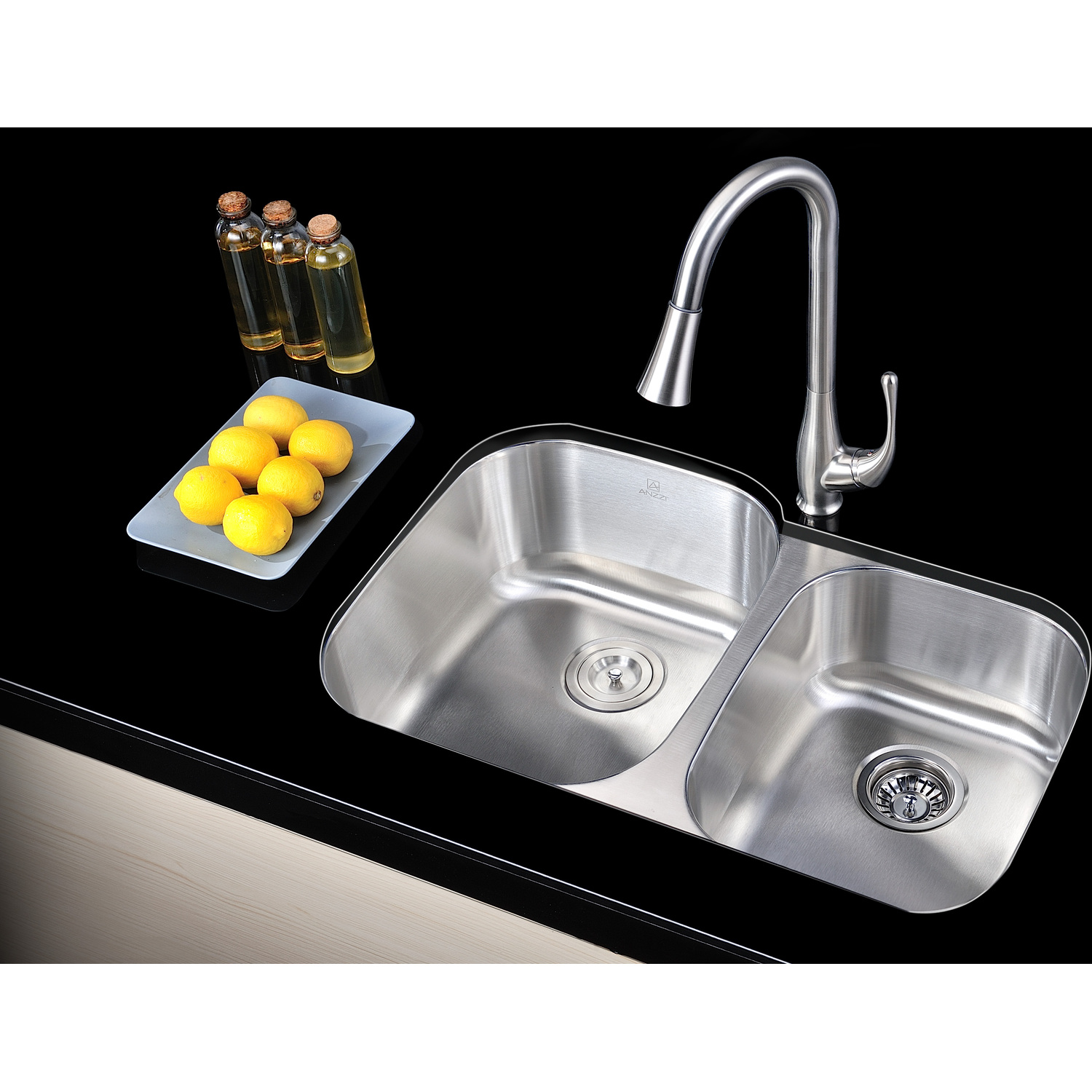 Dual Deep Soak basin opening with 60/40 splitANZZI Echo-STOP sound absorbing technology drastically reduces noise and are among the largest pads available in the marketTriple coated underside shielding prevents condensationDimensions: 32 in. L x 20.75 in. W x 9 in. H (Basin Depth: 9 in.)Minimum Cabinet Space: 36 in.Standard 3.5 in. drain openingGentle bowing base design makes for more efficient water drainageHigh tolerance machine pressed precisionRHINO ALLOY certified 304 Stainless Steel with 16 gauge strengthLustrous Satin finishIncludes perfect fitting strainer and drain assembly, insert strainer basket, mounting hardwareShips from factory within 24 hours once order is processedLifetime WarrantyTo speak to a knowledgeable and dedicated ANZZI specialist simply call 1-844-44-ANZZI or visit us on the web at www.ANZZI.com