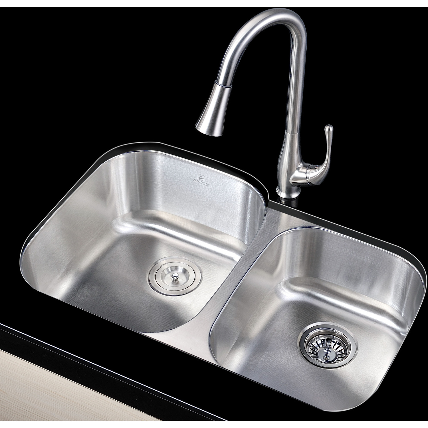 ANZZI presents the 32" MOORE SERIES precision pressed under mount kitchen sink. Representing the latest in modern home fixture designs and traditional European crafting technique this stunning display of artistry is pressed and shaped to perfection using RHINO ALLOY certified 16 gauge 304 stainless steel. Only ANZZI precision pressed kitchen sinks utilize RHINO ALLOY certified materials for superior strength and quality. The cavernous 60/40 deep soaking dual basin will comfortably accommodate the largest dish loads including pots, pans and more. And every ANZZI sink features the largest Echo-STOP sound dampening pads available and a layer of protective composite coating to further quiet noise and prevent condensation. ANZZI carries a proud tradition of crafting long lasting, quality home fixtures. With ANZZI perfection is our tradition.