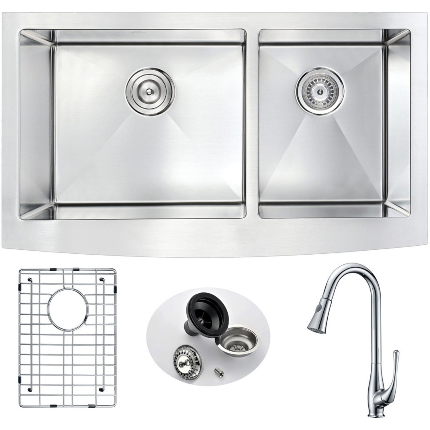Anzzi Elysian Farmhouse 33 in. Double Bowl Kitchen Sink with Singer Faucet in Polished Chrome, 848308081969, KAZ3320-041