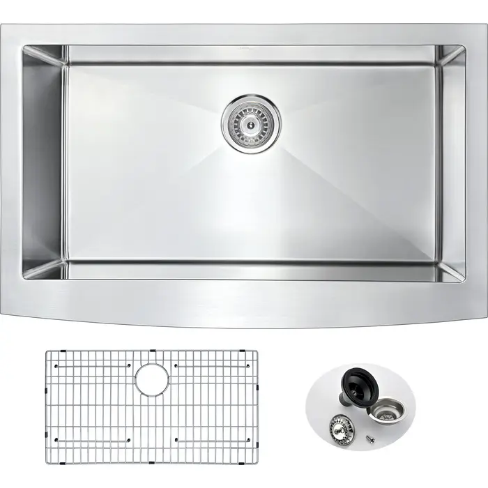 ANZZI presents the 32" ELYSIAN SERIES hand crafted farmhouse kitchen sink. Representing the latest in modern home fixture designs and traditional European crafting technique this stunning display of artistry is hand shaped to perfection using RHINO ALLOY certified 16 gauge 304 stainless steel. Only ANZZI hand crafted farmhouse kitchen sinks utilize RHINO ALLOY certified materials for superior strength and quality. The cavernous deep soaking basin will comfortably accommodate the largest dish loads including pots, pans and more. And every ANZZI sink features the largest Echo-STOP sound dampening pads available and a layer of protective composite coating to further quiet noise and prevent condensation. Well defined diversion lines ensure quick and total water drainage and the subtly curved corners allow of easier cleaning. ANZZI carries a proud tradition of crafting long lasting, quality home fixtures. With ANZZI perfection is our tradition.