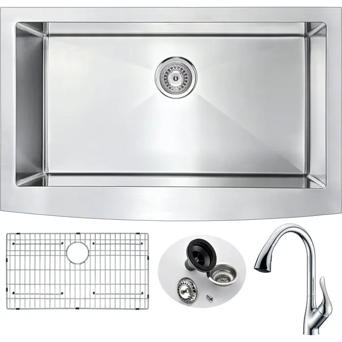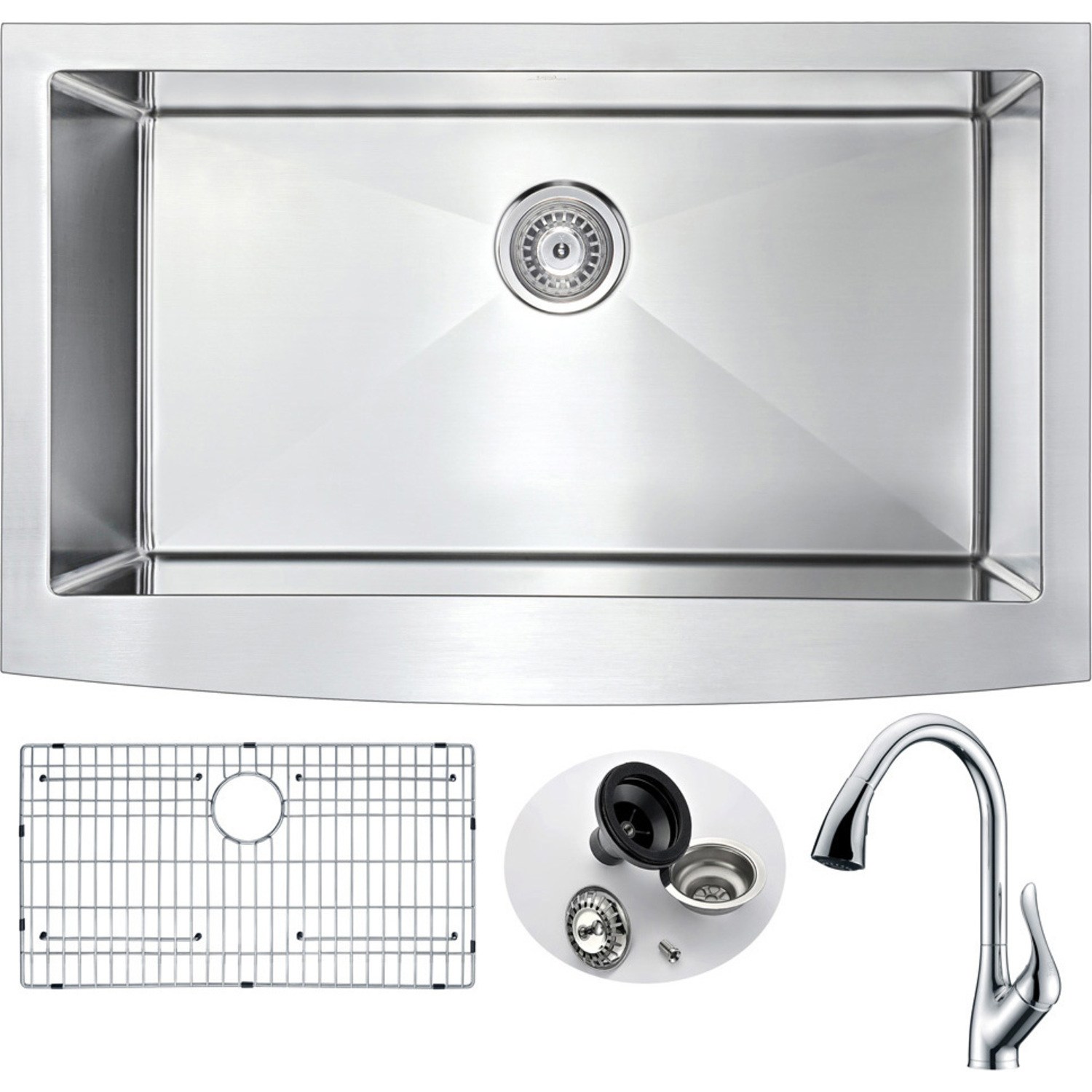 Anzzi Elysian Farmhouse 36 in. Kitchen Sink with Accent Faucet in Polished Chrome, 848308081785, KAZ3620-031