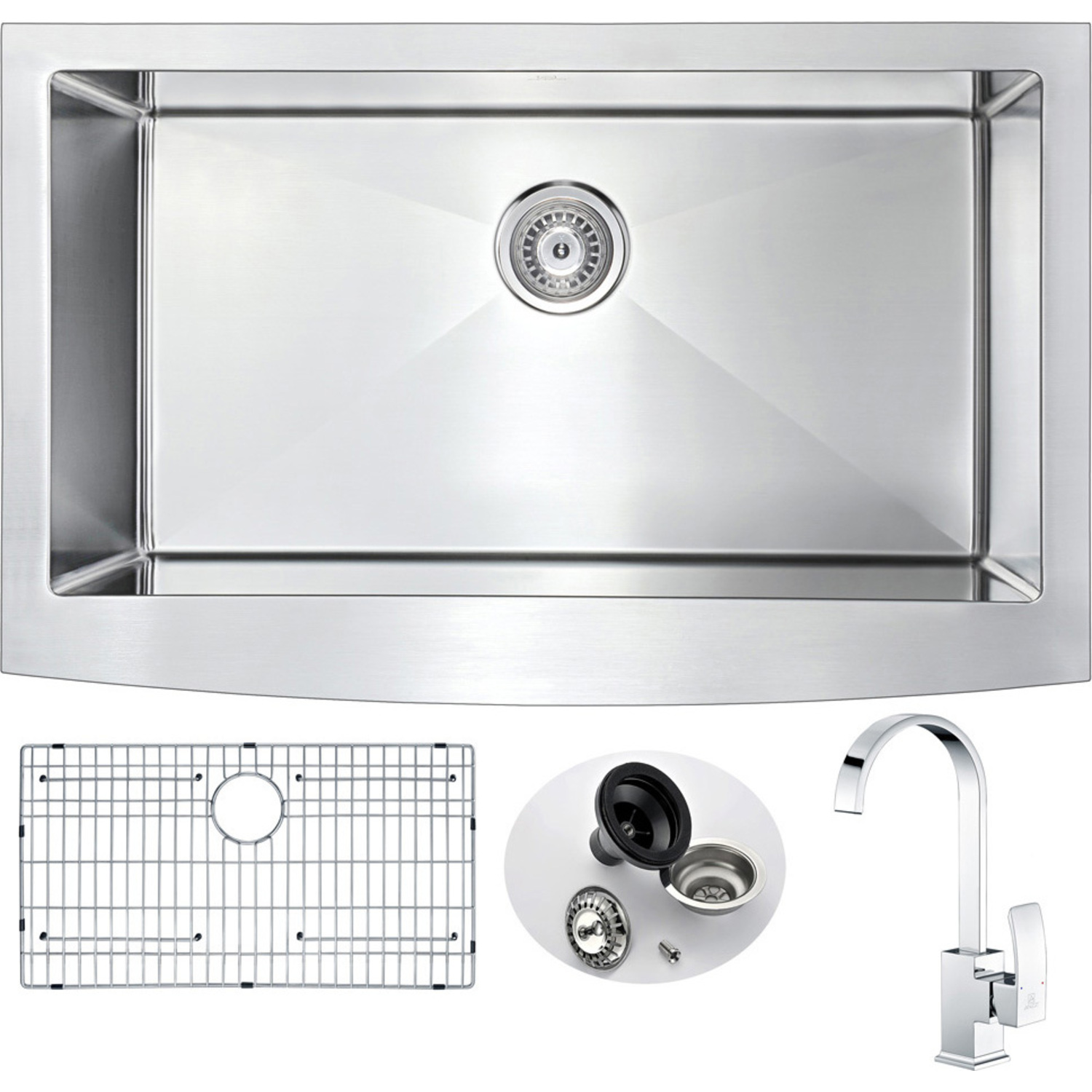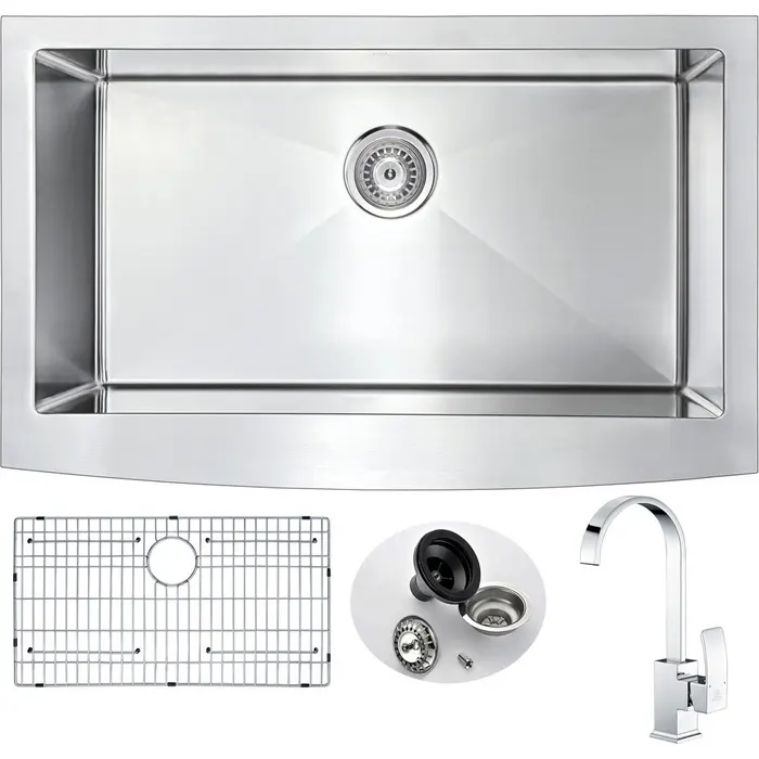 Anzzi Elysian Farmhouse 36 in. Kitchen Sink with Opus Faucet in Polished Chrome, 848308081877, KAZ3620-035
