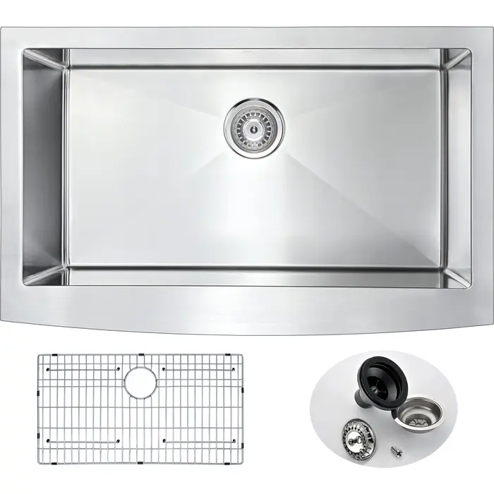 Anzzi Elysian Farmhouse Stainless Steel 36 in. Single Bowl Kitchen Sink in Brushed Satin, 848308073537, K-AZ3620-1A