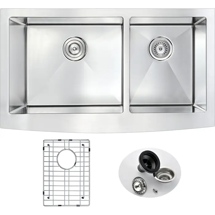 Anzzi Elysian Farmhouse Stainless Steel 36 in. 0-Hole 60/40 Double Bowl Kitchen Sink in Brushed Satin, 848308073551, K-AZ3620-3A